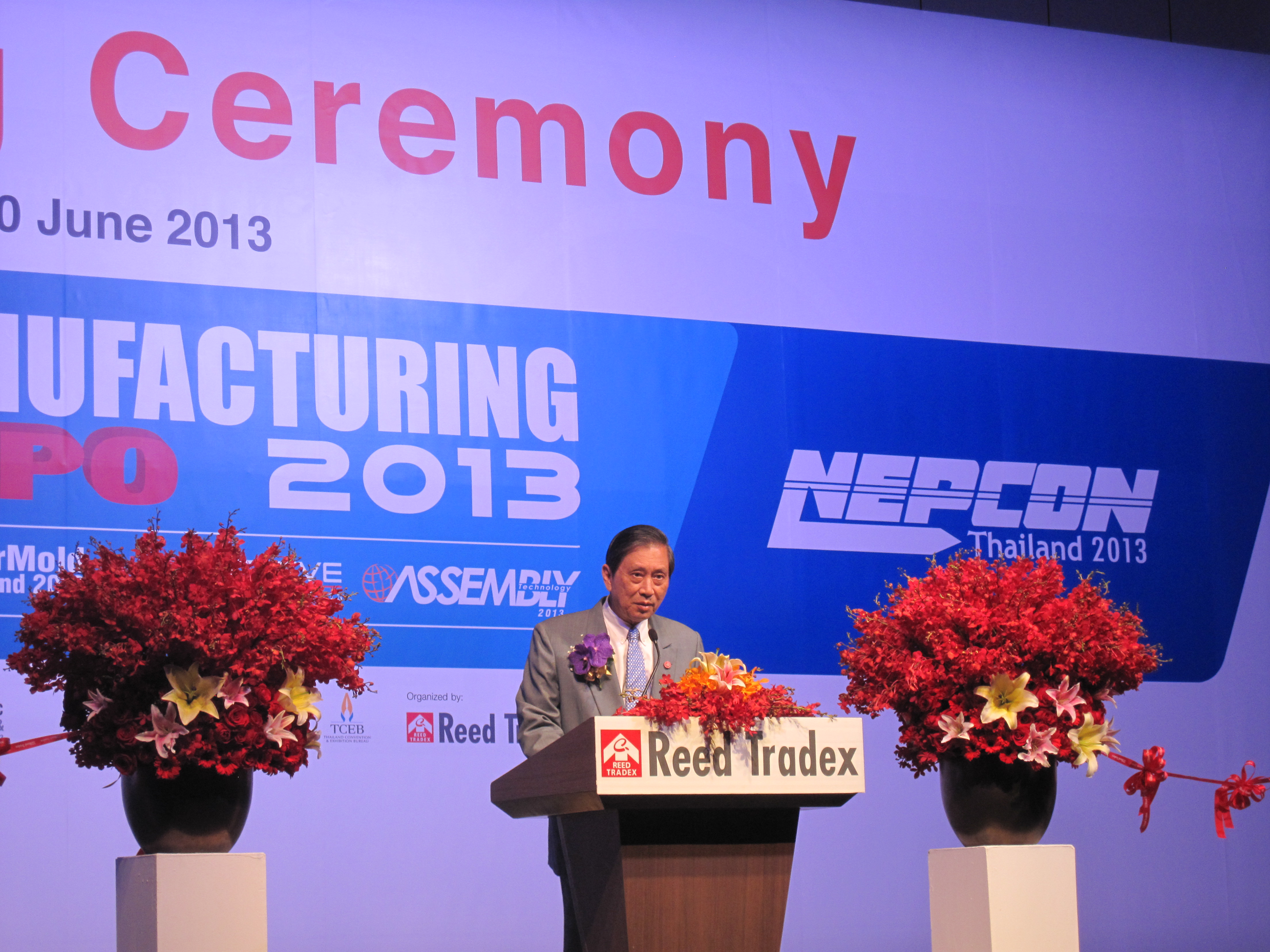 | 2013年6月19~26日,中國模具工業協會常務副會長兼秘書長武兵書、顧問李志剛教授、副秘書長李玉華赴泰國參加2013亞洲模具協會聯合會年會并赴新加坡考察。          2013年6月20日上午,在泰國模協的安排下,參加亞洲模協聯合會的會議代表出席了2013 機械制造技術展覽會的開幕式。開幕式在泰國展覽中心舉行,泰國國家副總理H.E. Dr. PlodprasopSuraswadi出席了開幕式并做了重要講話。來自泰國和其他國家的嘉賓出席了開幕式。