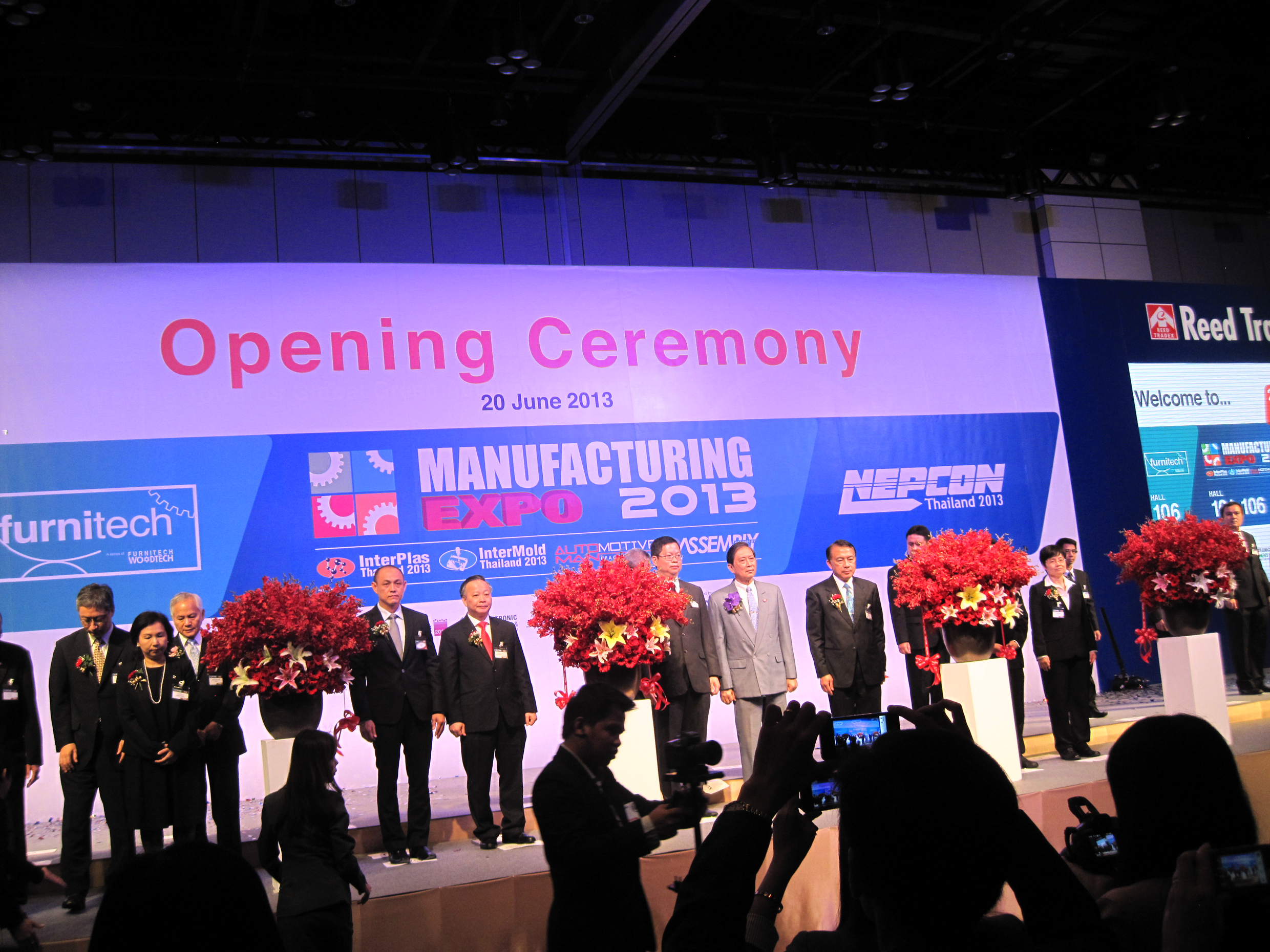開幕式后,會議代表參觀了泰國國際機械制造技術展覽會。本展會由6個專題展組成: (1)ASSEMBLY TECHNOLOGY 2013,作為東南亞唯一的、最大的、關于裝配技術與自動化機械零組件的專業展會,由泰國勵展(Reed Tradex)展覽公司主辦。本屆展會展示自動化和組裝的前沿技術,也是裝配技術與自動化機械零組件及配銷商發掘商機的最佳機會! (2)NEPCON THAILAND 2013(泰國國際電子元器件及生產設備展覽會),展品范圍包括表面貼裝技術設備及服務、測試及測量設備及服務、電子產品生產服務、電子元器件及移動電話元器件、平板顯示模塊及應用、汽車部件及元器件生產技術、精密部件及金屬部件相關產品、汽車檢測與維護儀器及設備相關電子設備、汽車產業相關軟件及電子設計、車載電子組件及車載通訊導航系統、發動機控制系統。 (3)Automotive Manufacturing2013(泰國國際汽車生產制造、機械工具展),致力于展示汽車零部件和電子零件制造技術。 (4)InterPlas Thailand 2013(泰國國際塑料及橡膠機械展),致力于展示塑料和橡膠前沿生產技術。中國的塑料原材料廠商和塑料機械廠商也積極參與東南亞市場的貿易交流與合作。 (5)InterMold Thailand2013(泰國國際模具展),東南亞唯一針對模具生產的機械技術行業展會。本展會與上述展會同期盛大舉行,提供了在國際買主及賣方聚集的平臺,在摸具展中有許多中國的模具制造商積極展示他們的產品和技術。 (6)Industrial Components Subcontracting 2013 (工業、零部件、分包展覽會)。展會期間,還隆重舉辦了Surface & Coatings Forum 2013 (表面處理和涂層論壇)。  展會現場                                             |