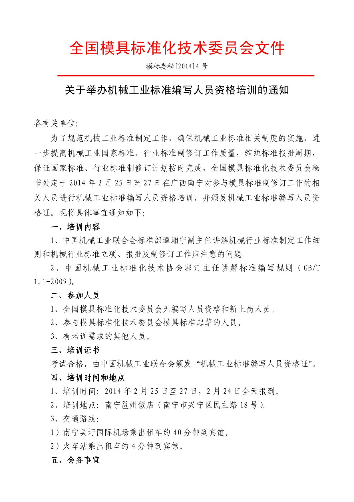 關(guān)于舉辦機(jī)械工業(yè)標(biāo)準(zhǔn)編寫人員資格培訓(xùn)的通知