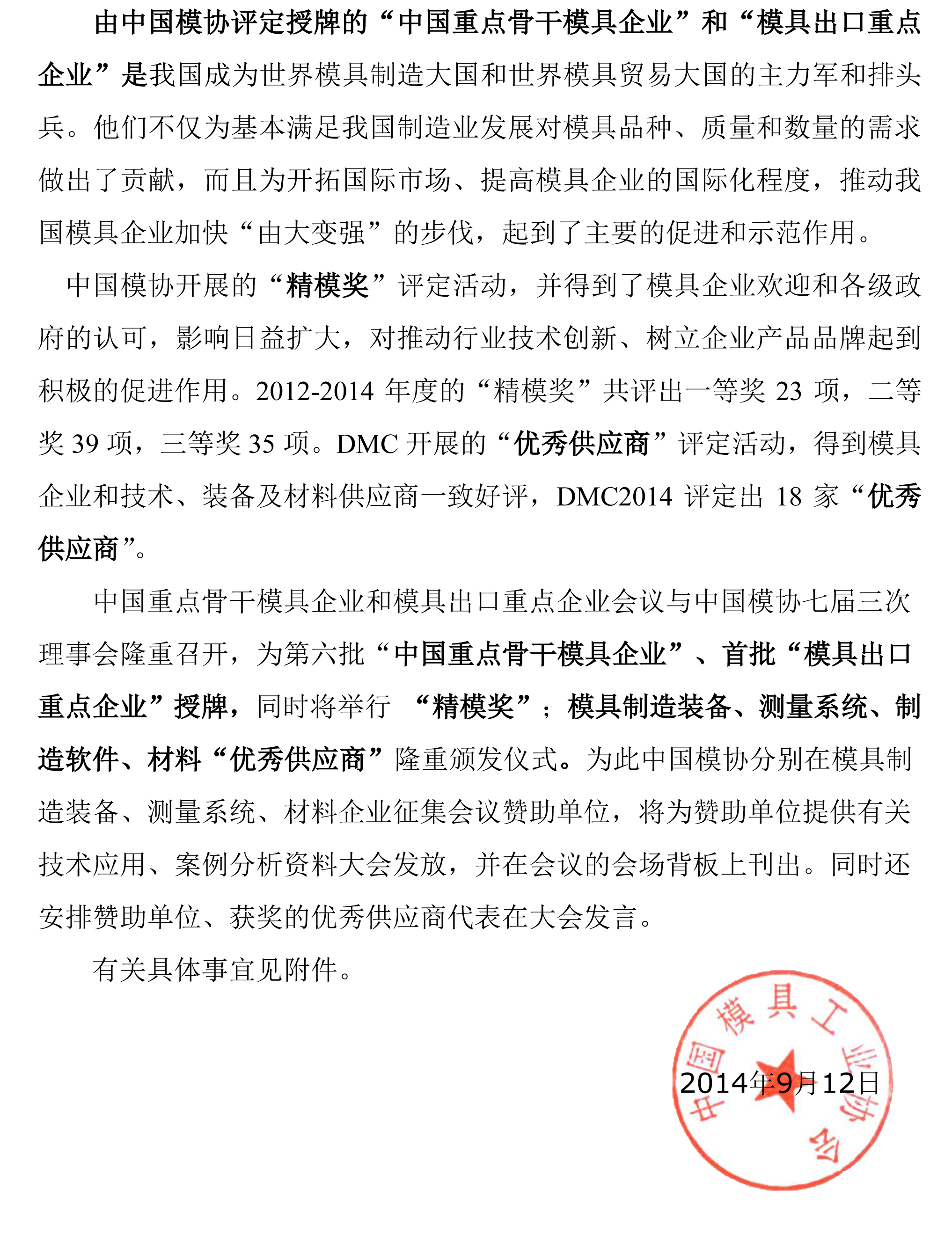 2014’中國模具行業大會支持、贊助邀請函
