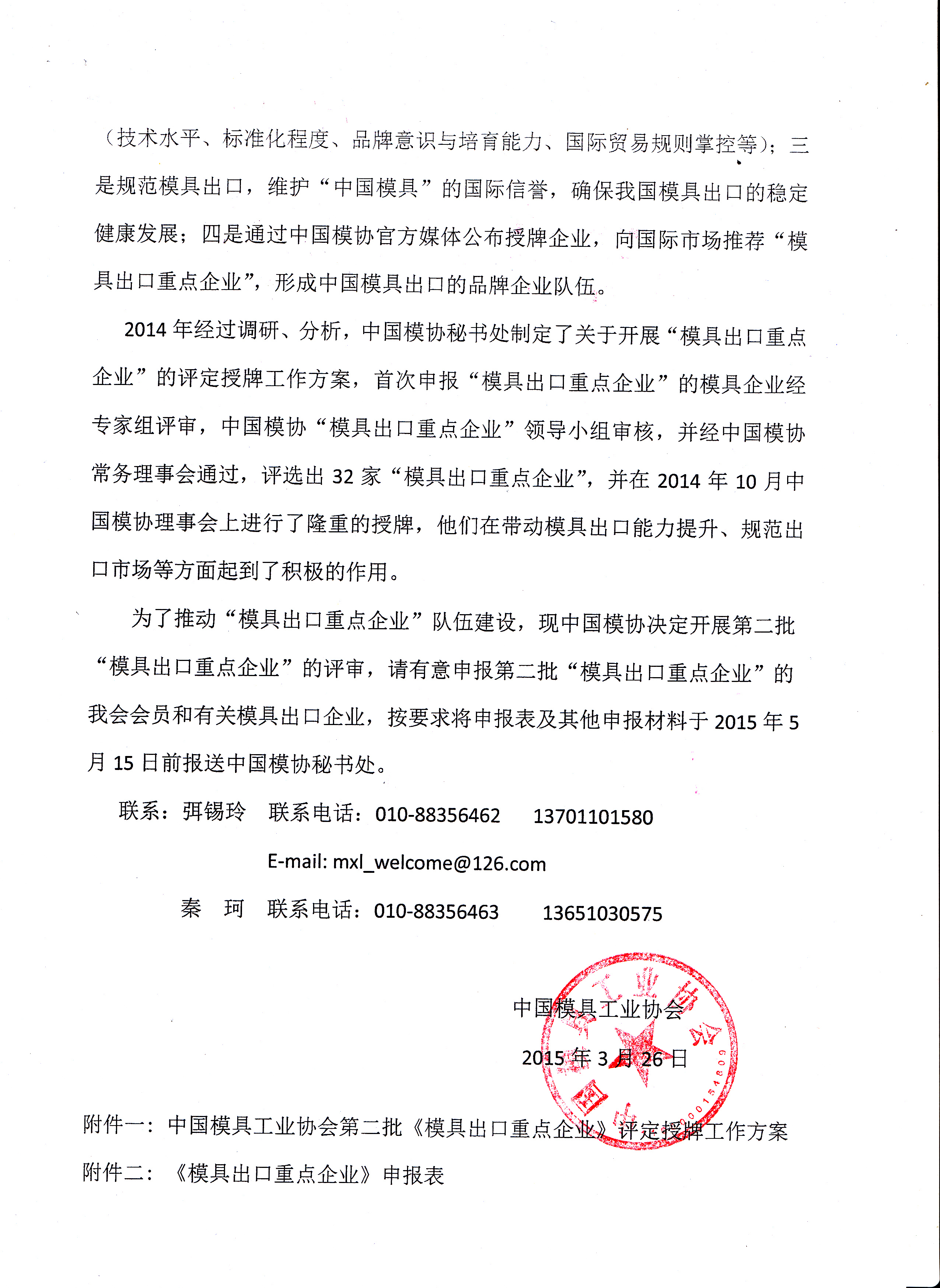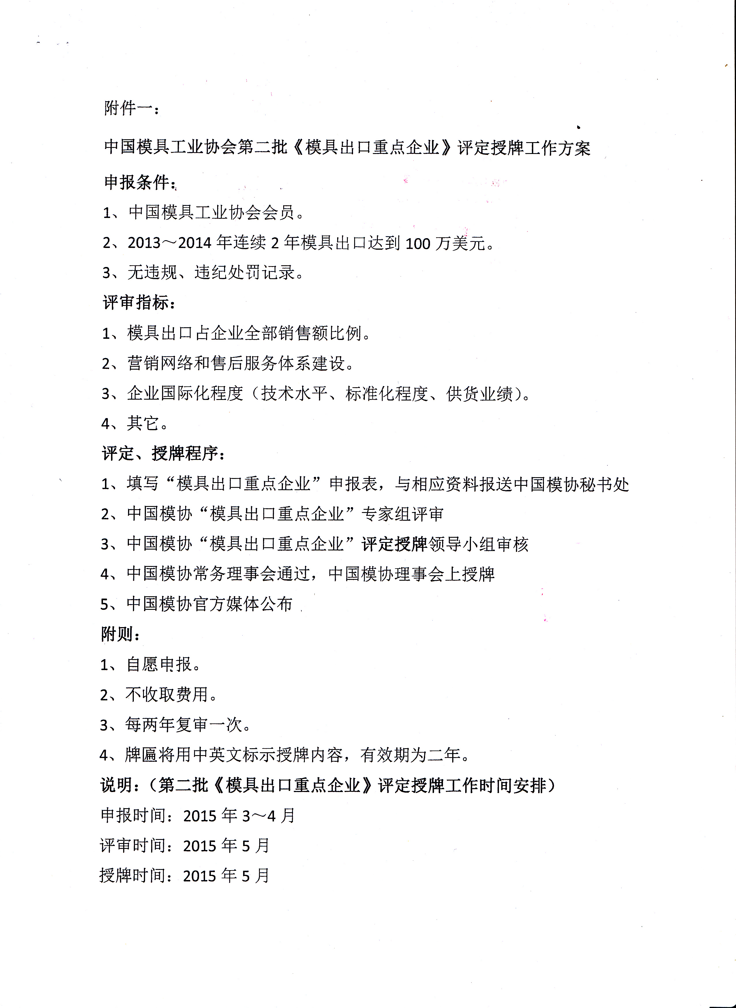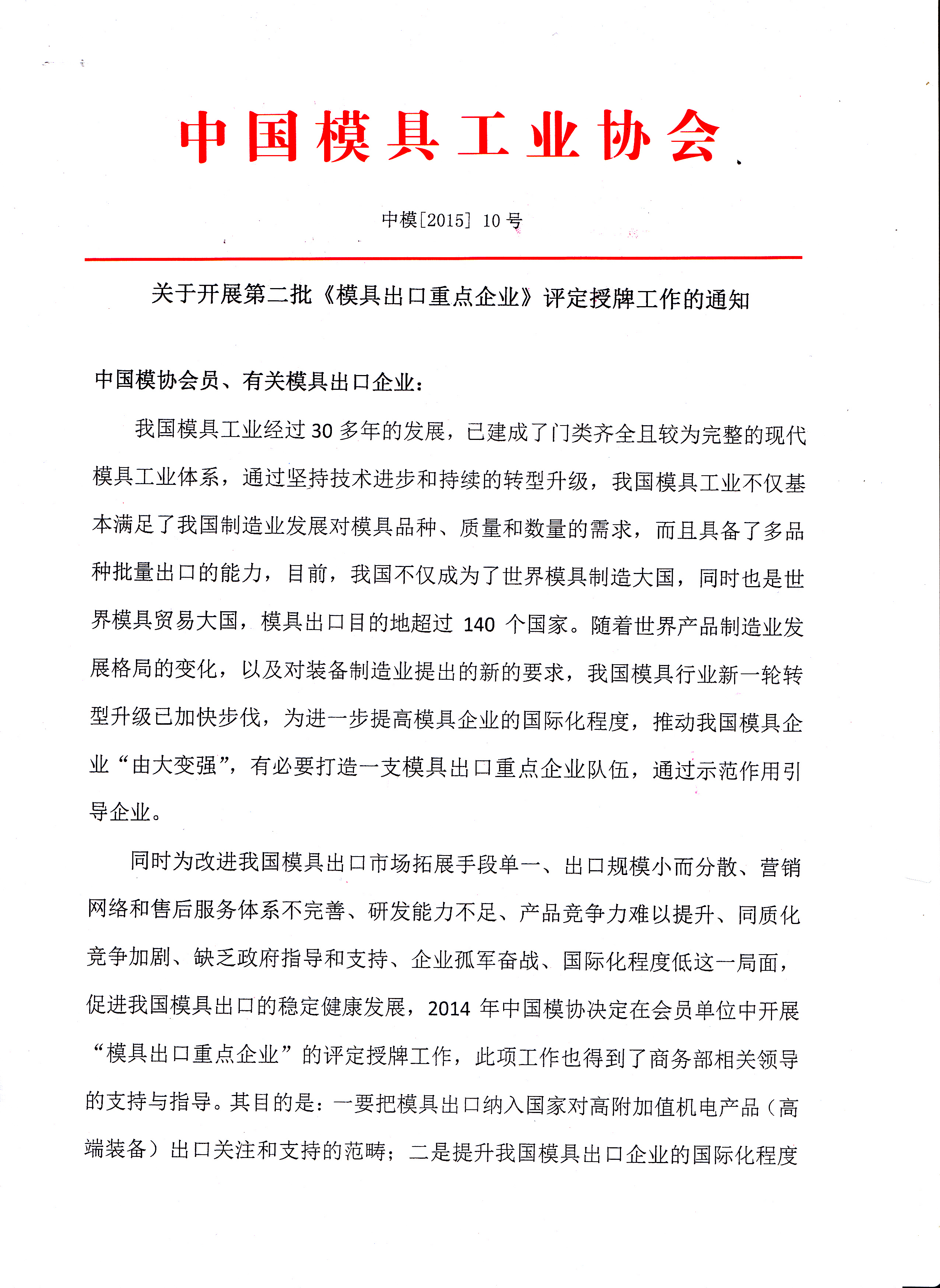 關于開展第二批《模具出口重點企業(yè)》評定授牌工作的通知