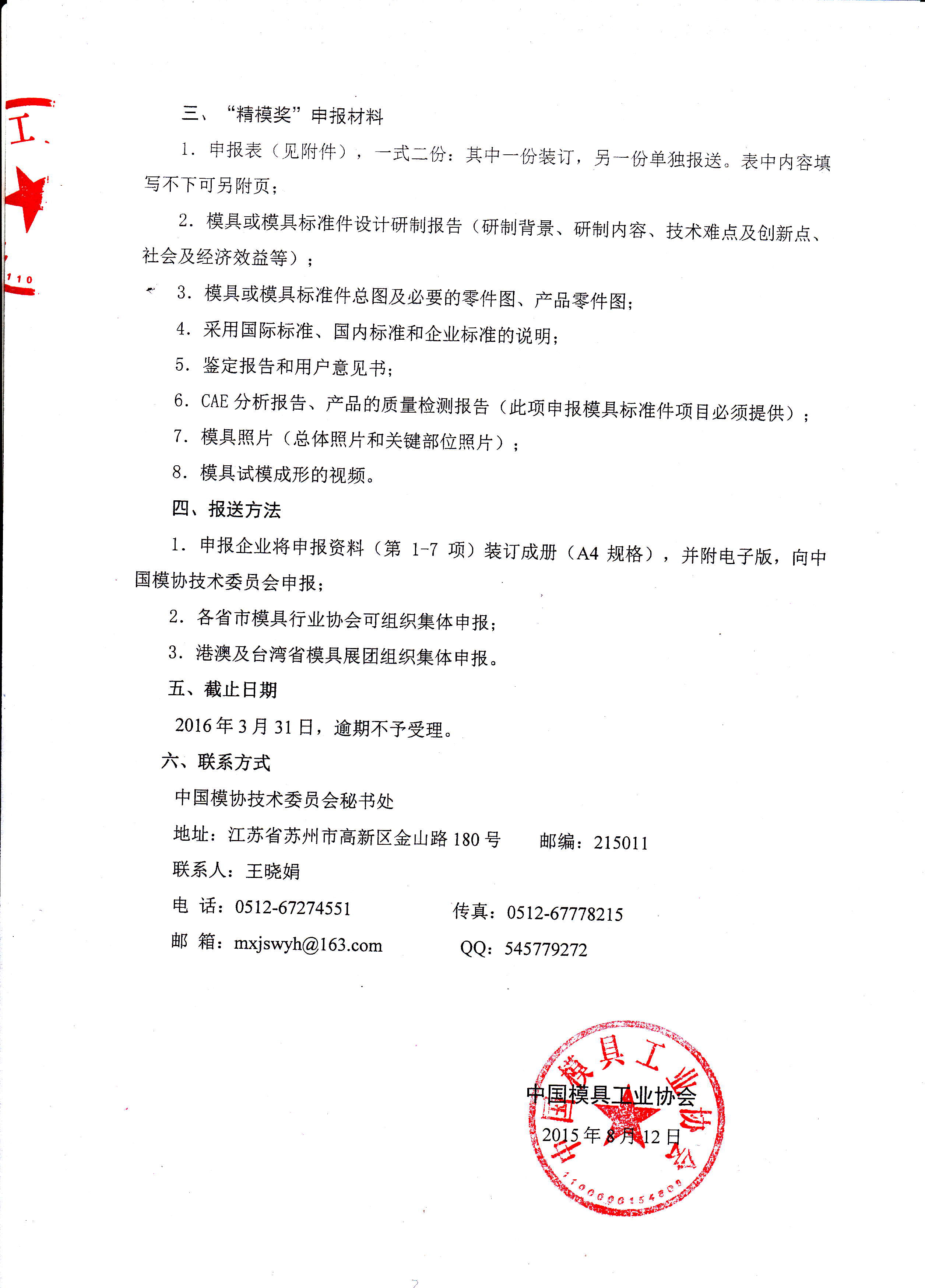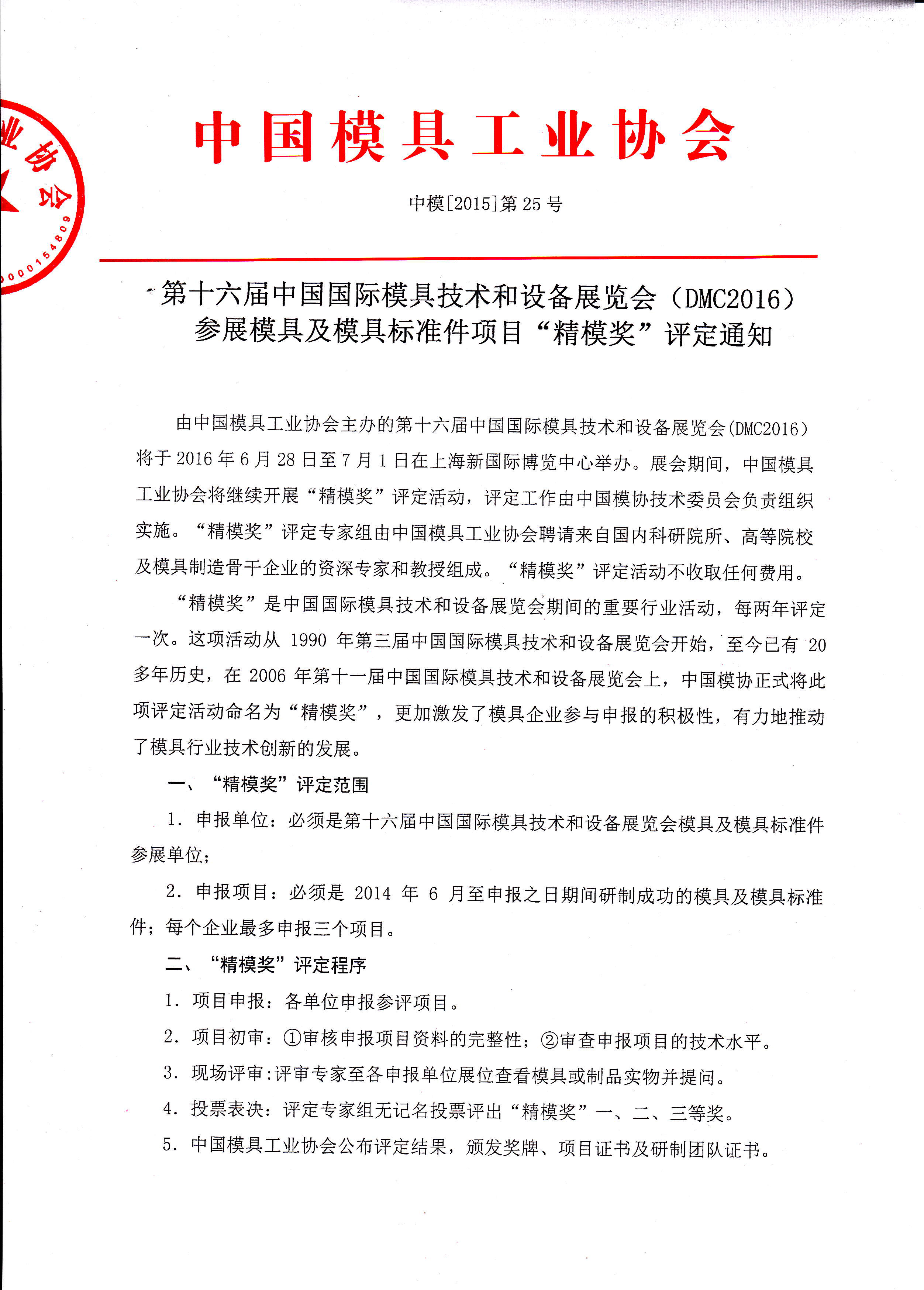 第十六屆中國國際模具技術和設備展覽會(DMC2016)參展模具及模具標準件項目“精模獎”評定通知