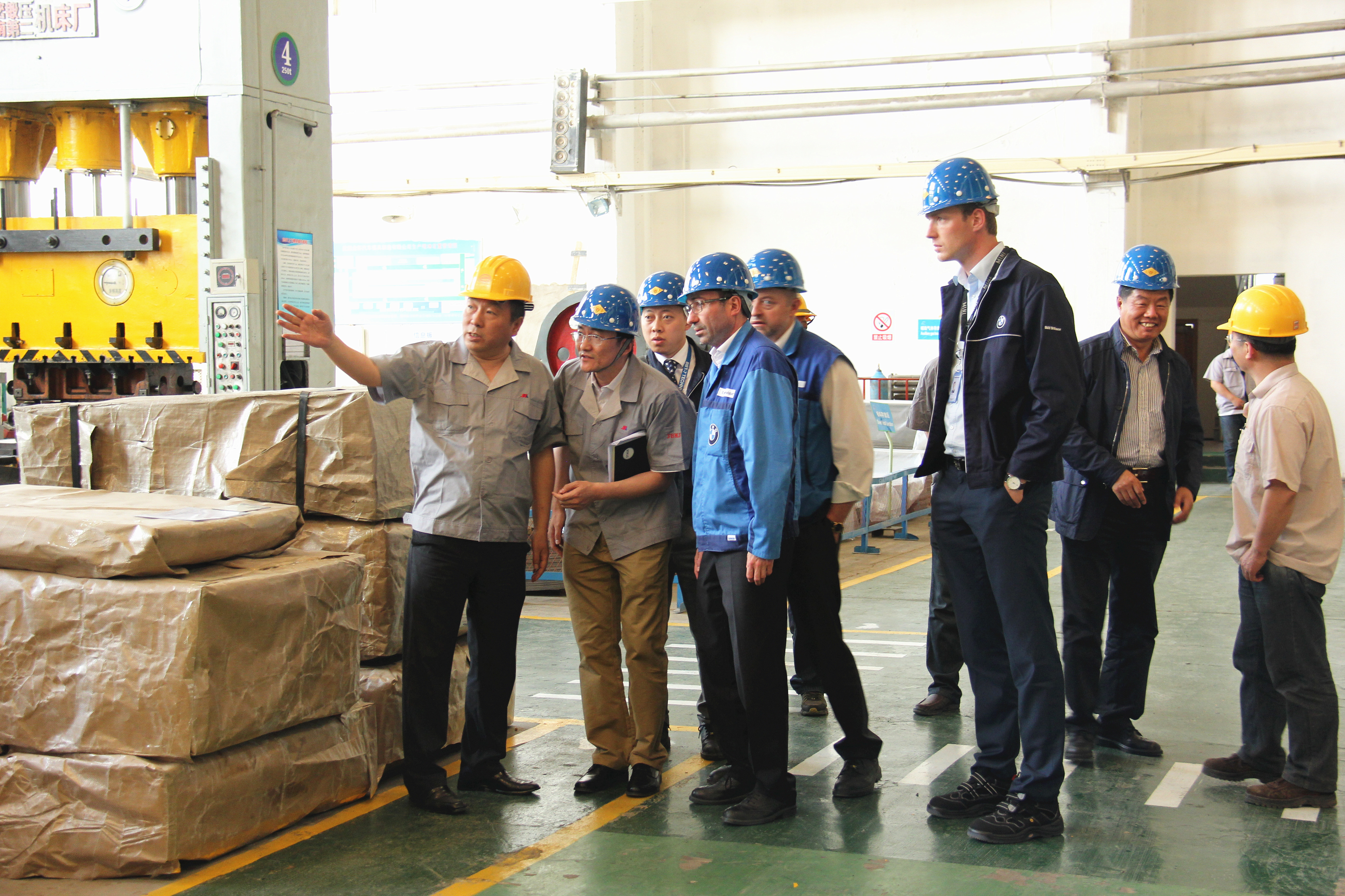 下圖為華晨寶馬汽車公司客人到金杯模具公司洽談業務,左一為金杯模具公司總經理杜寶臣