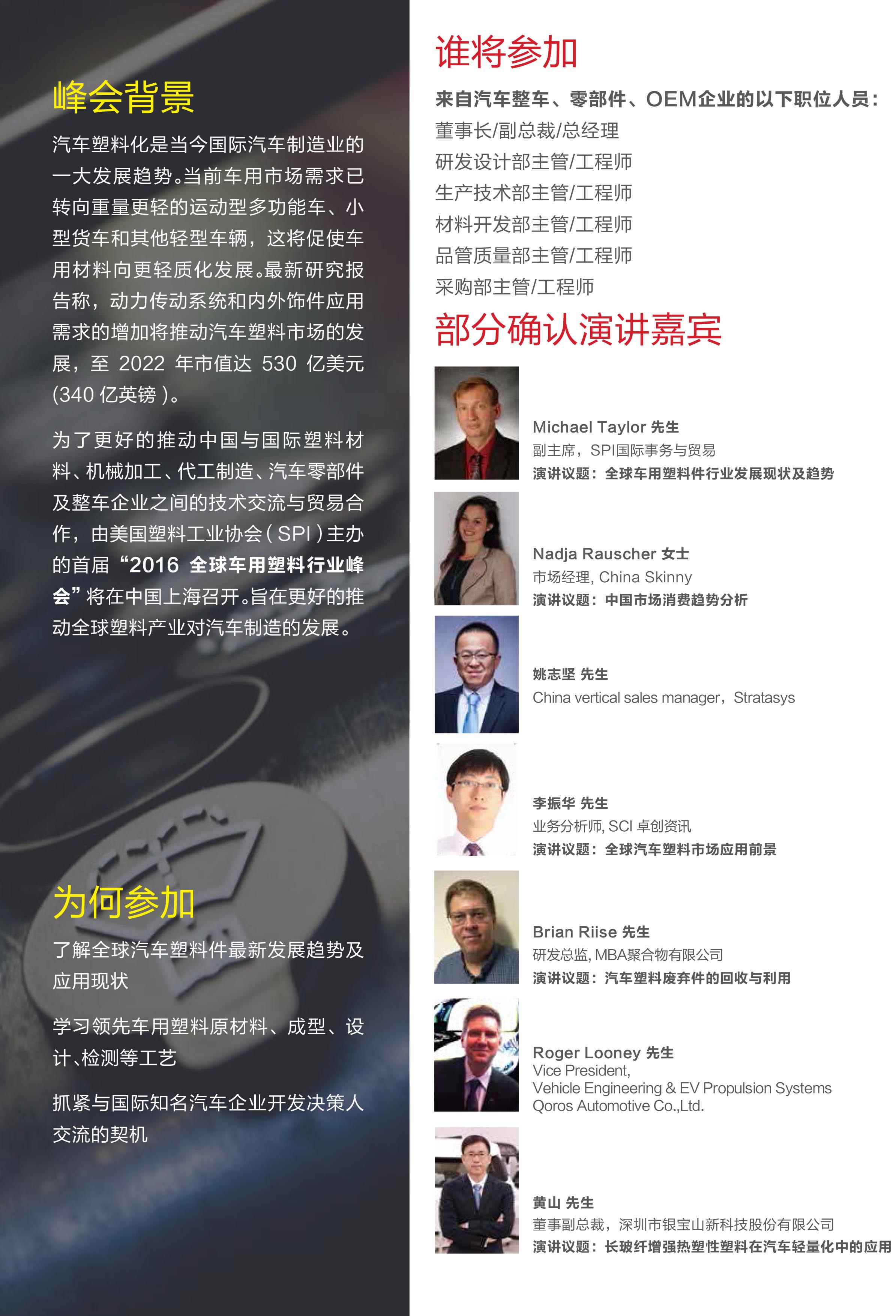 “”2016全球車用塑料行業峰會”正在火熱報名中
