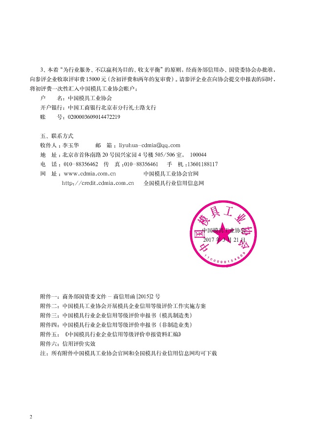 附件二:中國模具工業(yè)協(xié)會(huì)開展模具企業(yè)信用等級(jí)評(píng)價(jià)工作實(shí)施方案.pdf