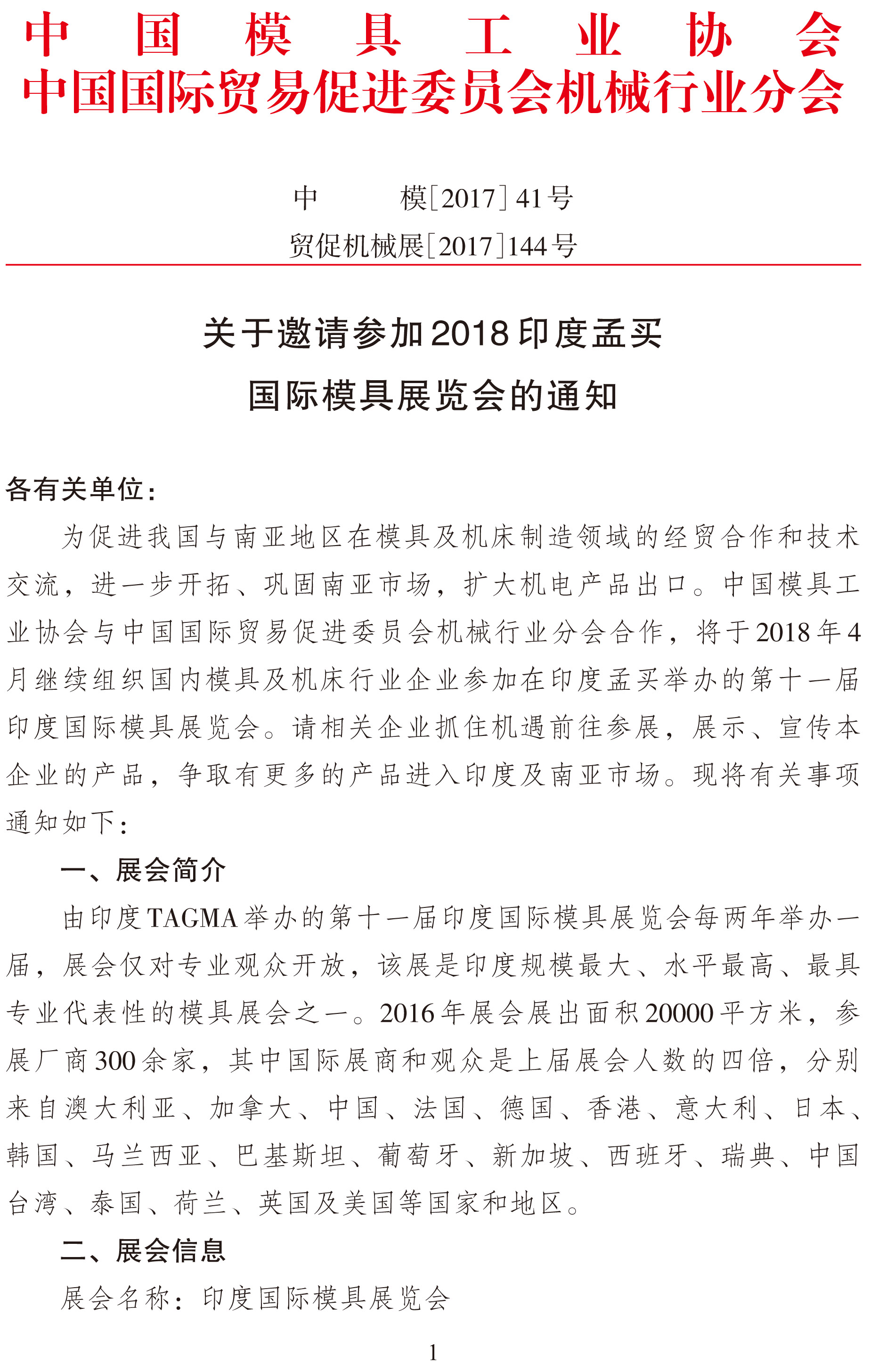 關于邀請參加2018印度孟買國際模具展覽會的通知