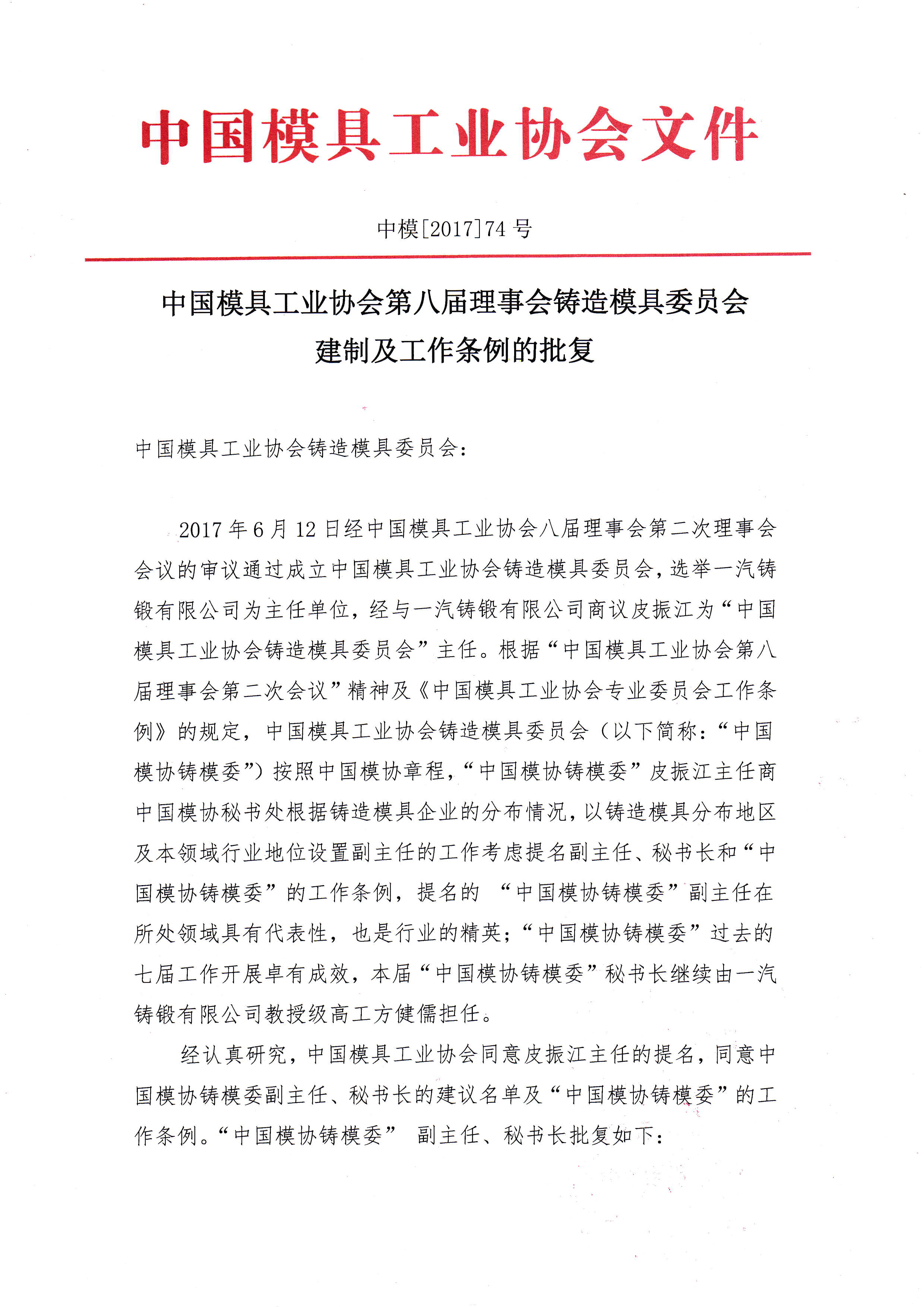 鑄造模具委員會建制及工作條例的批復