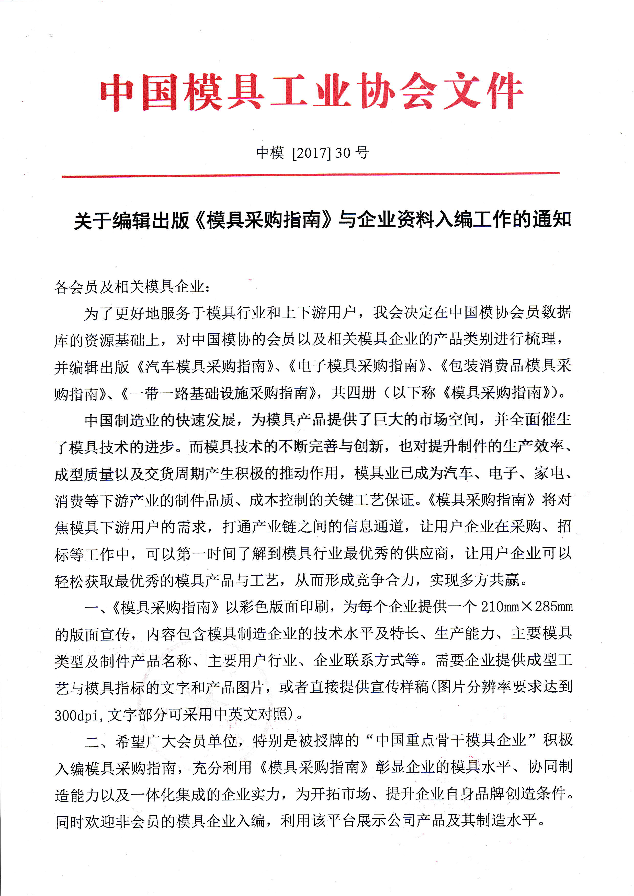 關于編輯出版《模具采購指南》與企業資料入編工作的通知