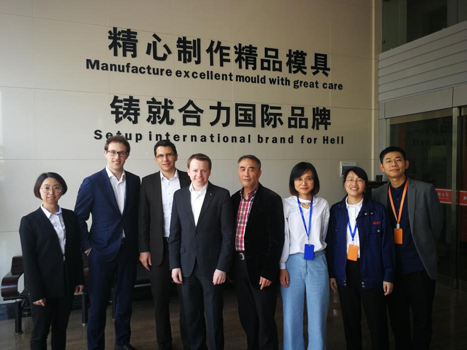 隨后,下午一行四人走訪了寧海縣第一注塑模具有限公司,受到了技術總監丁波和總工程師顧初青的熱情接待。調研生產流程的過程中,德國專家細致地詢問并記錄了公司各部門情況和生產車間的情況。車間調研結束后,丁總監認真記錄了基準化分析問卷中需要核對確認的問題,并聽取了Moritz先生對公司整體感受的介紹。第一注塑走訪結束后,一行四人離開丁波地區,趕往黃巖。