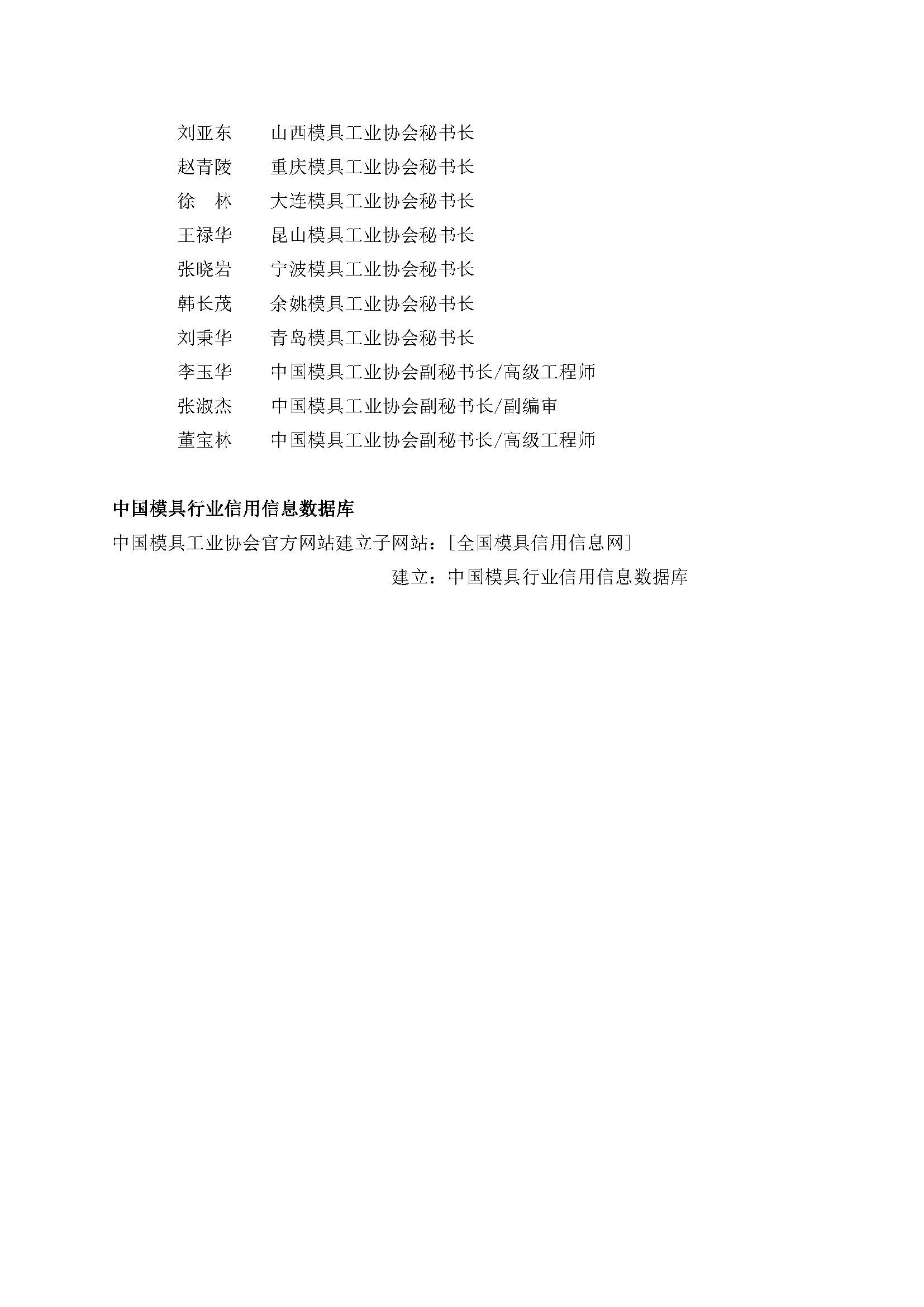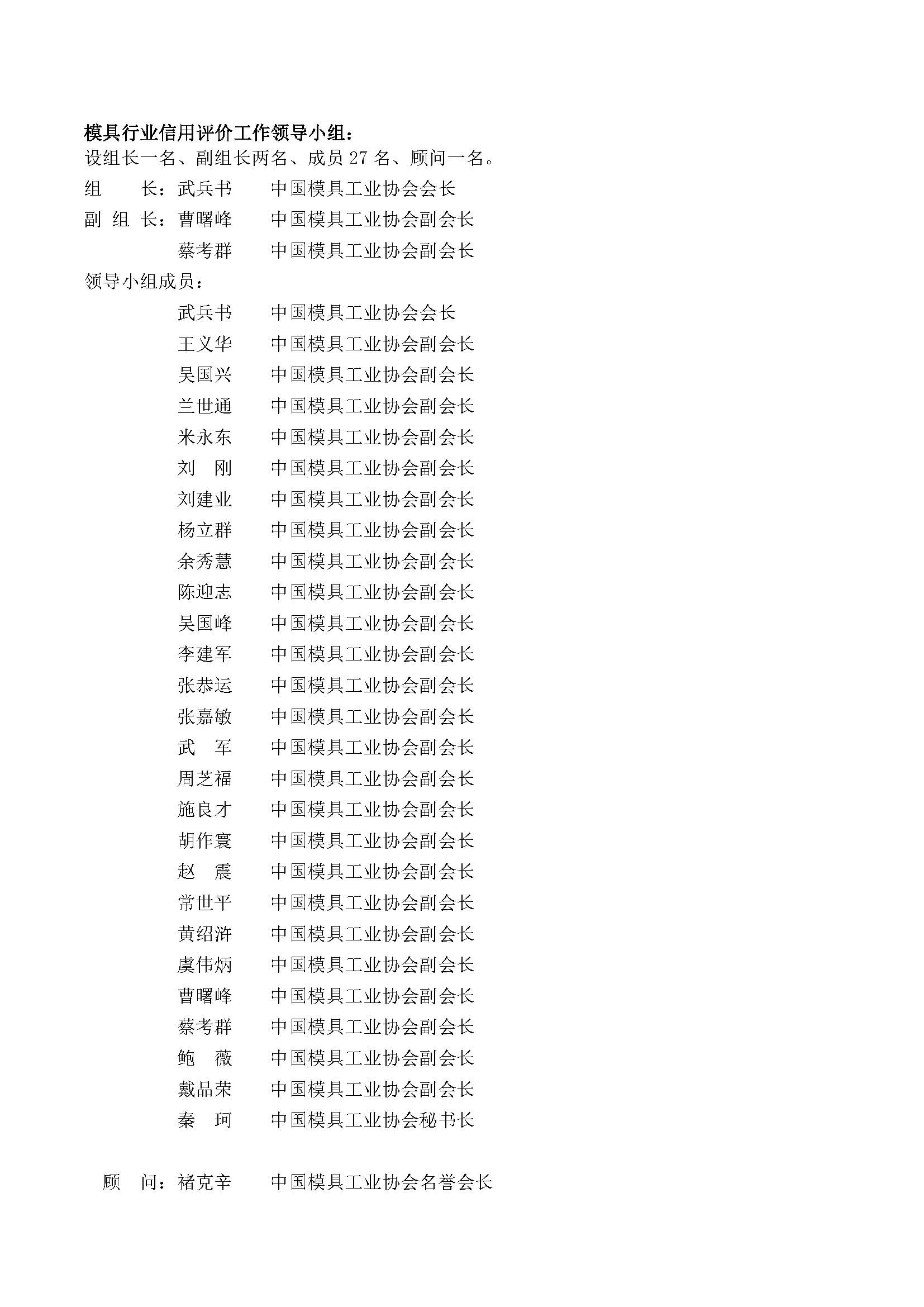 模具行業信用評價工作組織機構名單