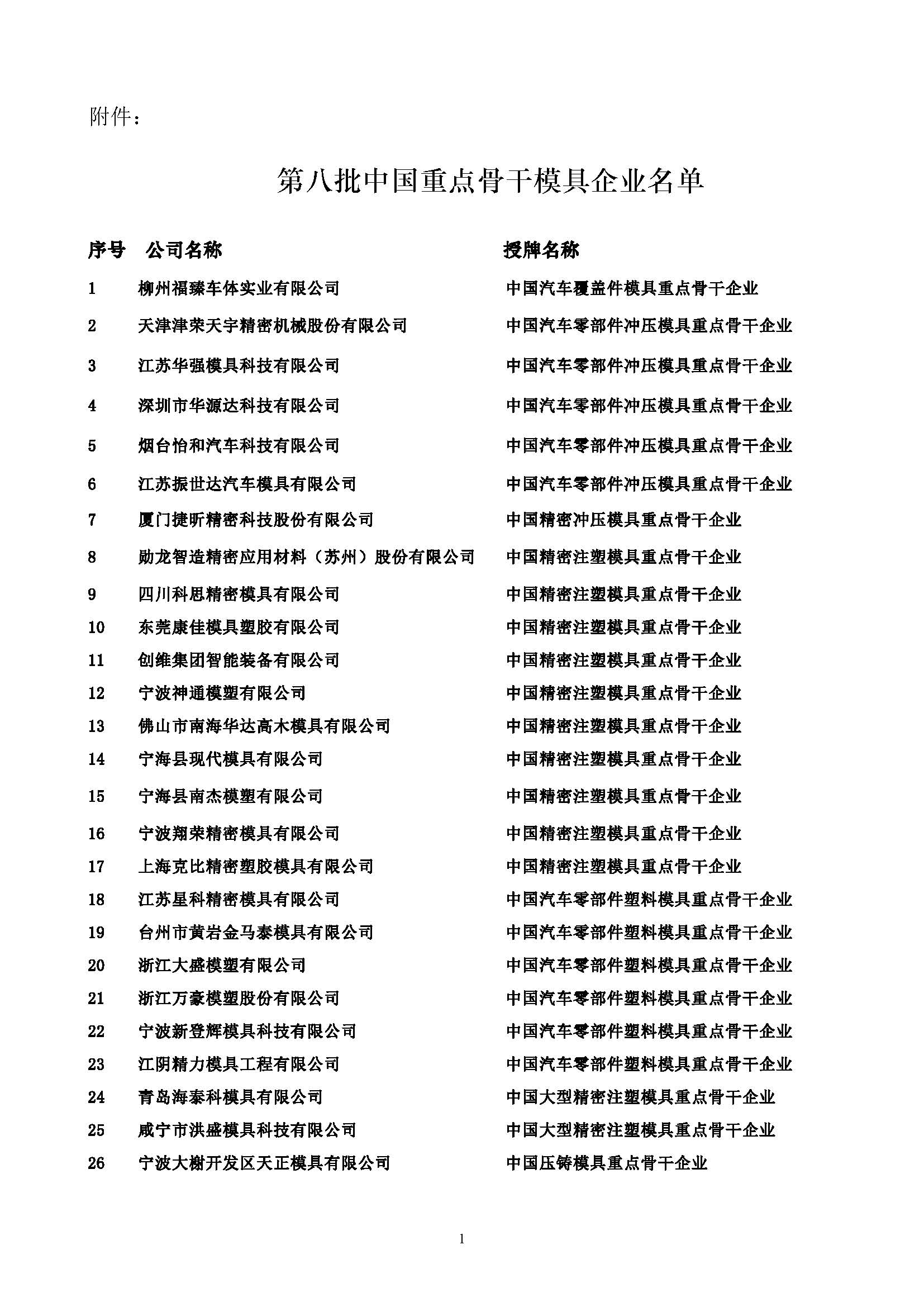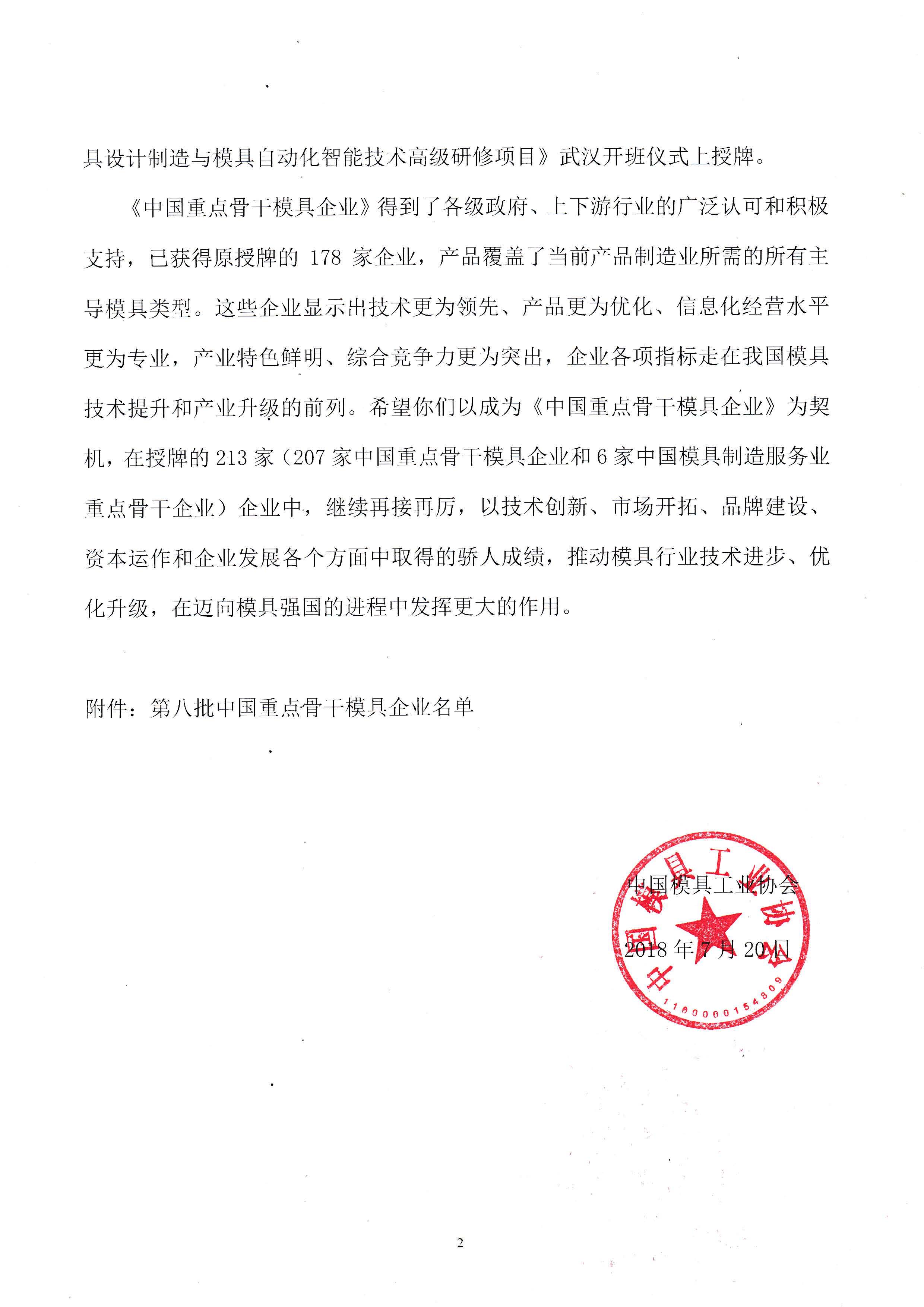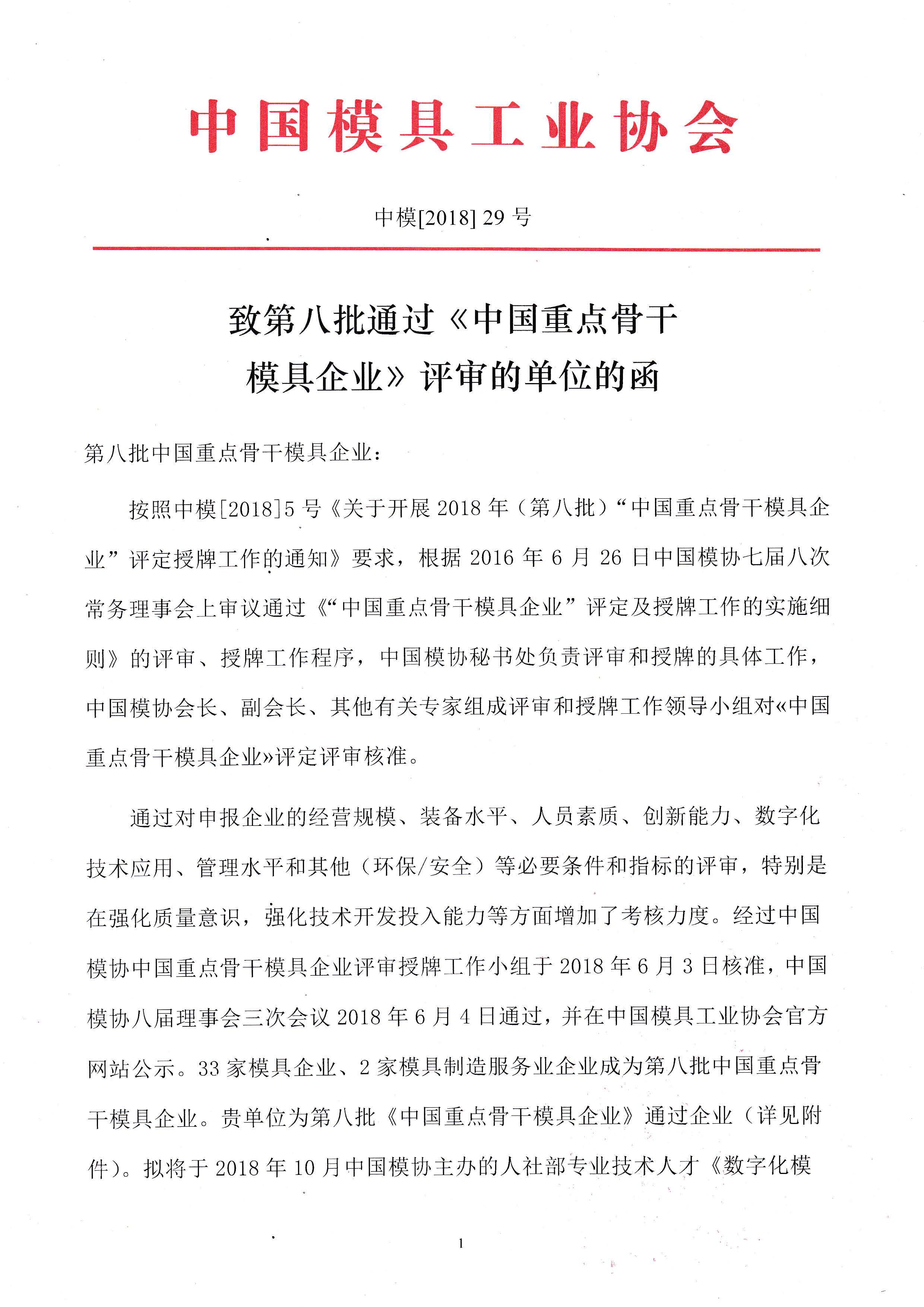 第八批重點骨干模具企業通知函