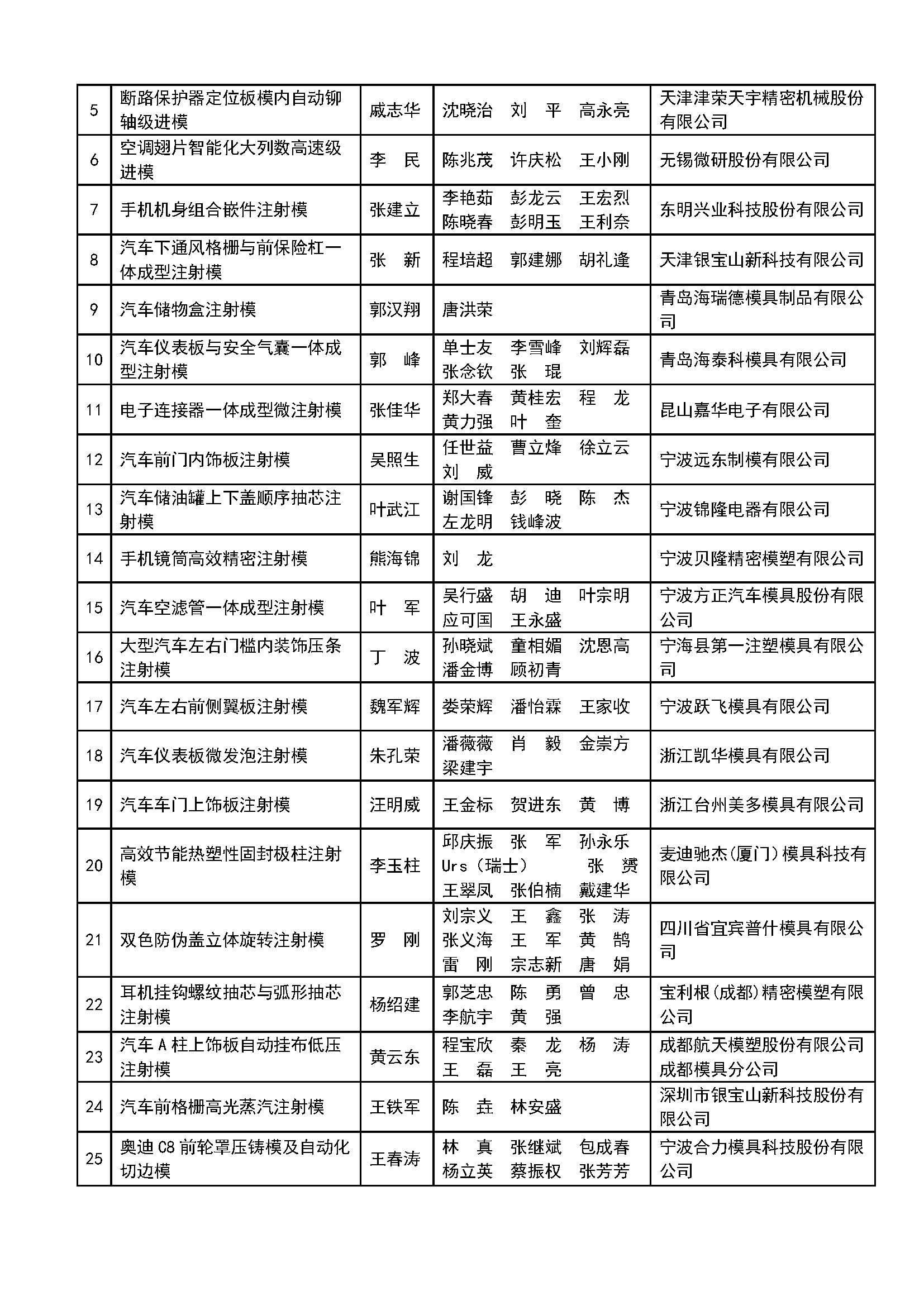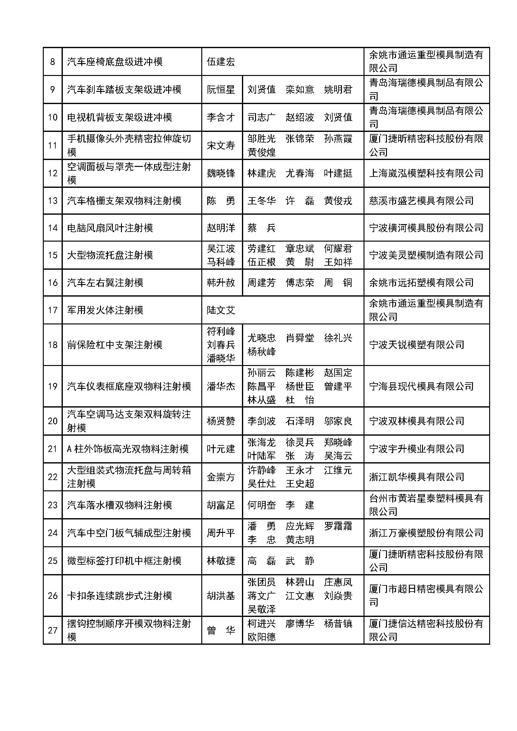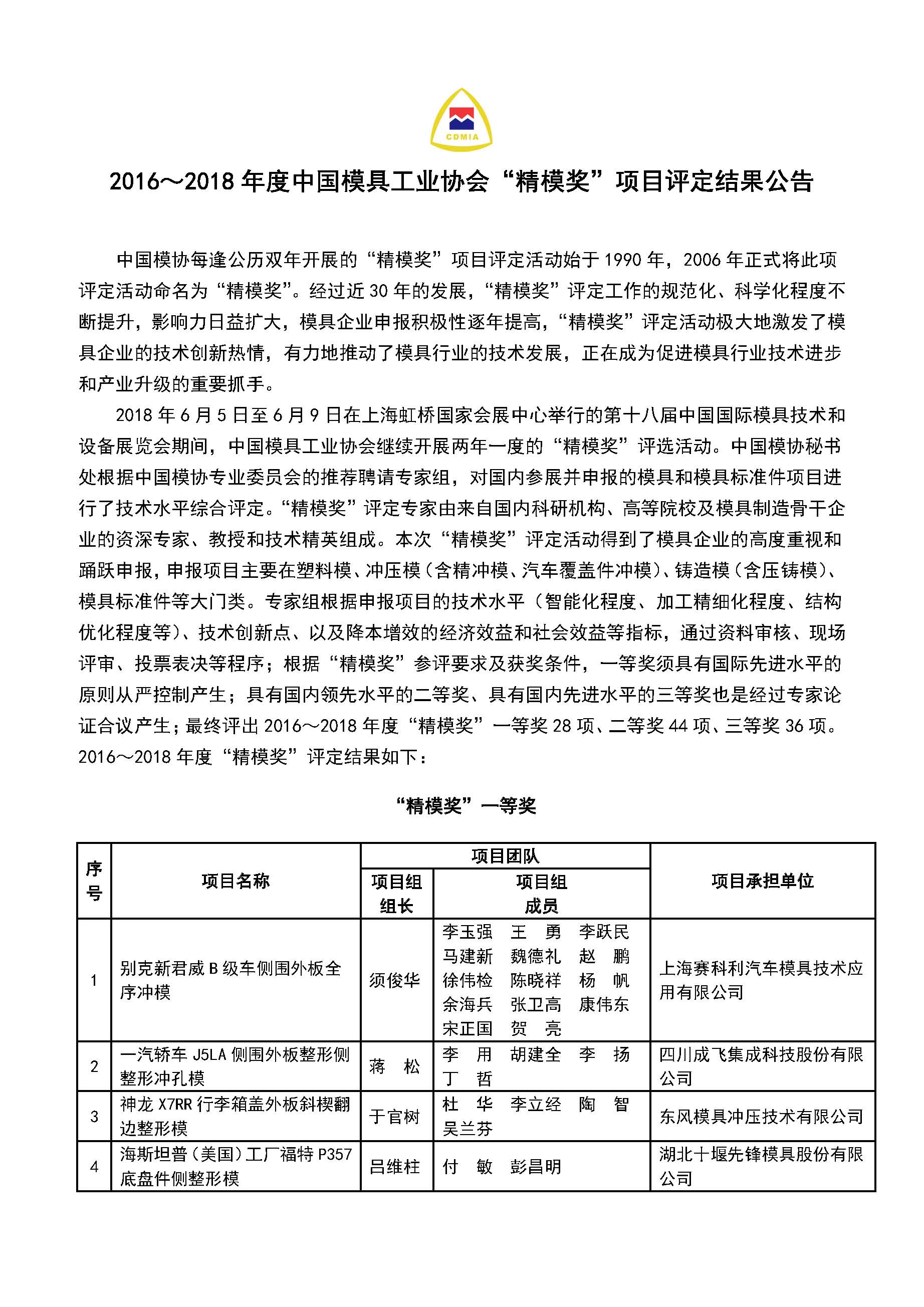 2016~2018年度中國模具工業協會“精模獎”項目評定結果公告