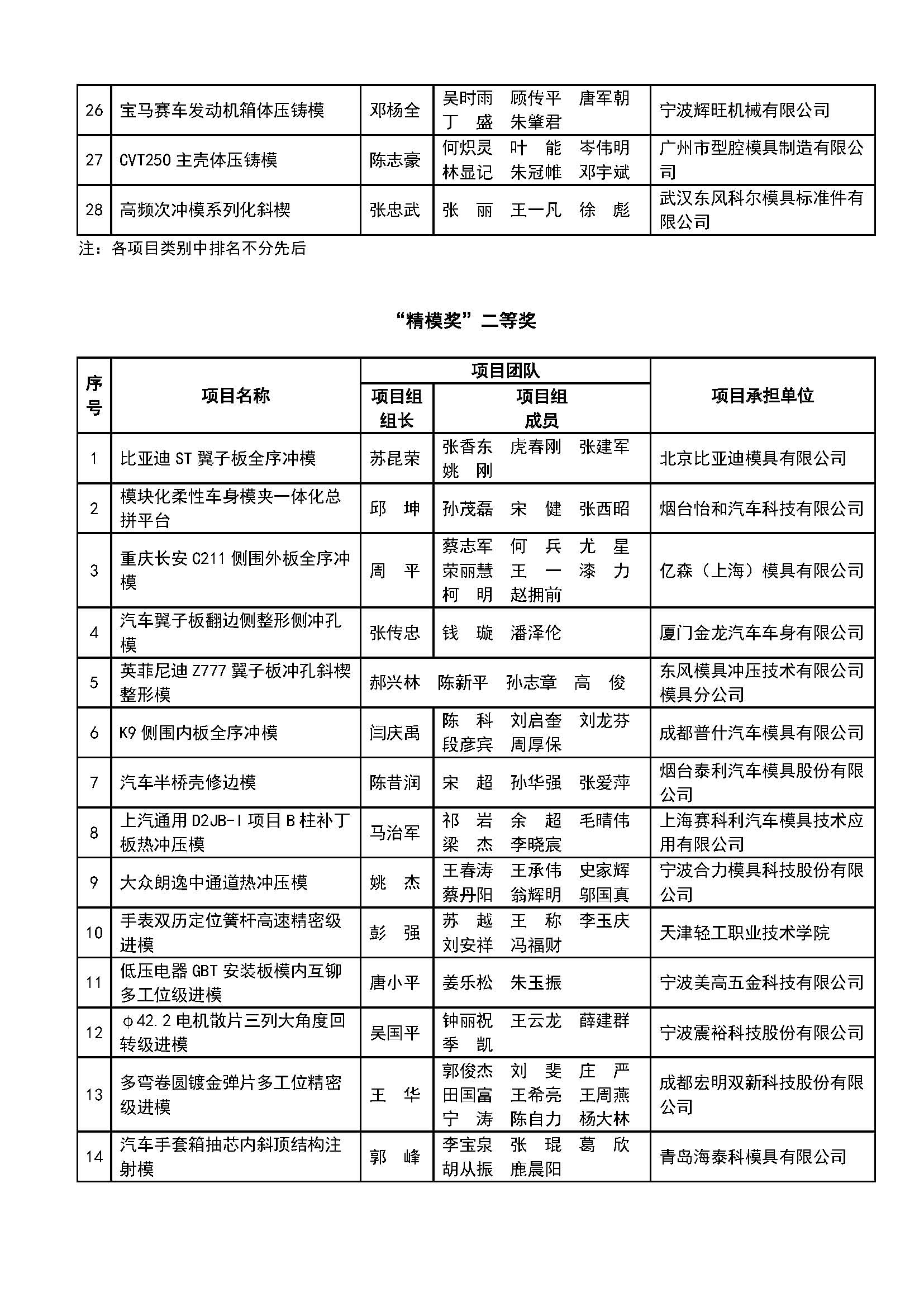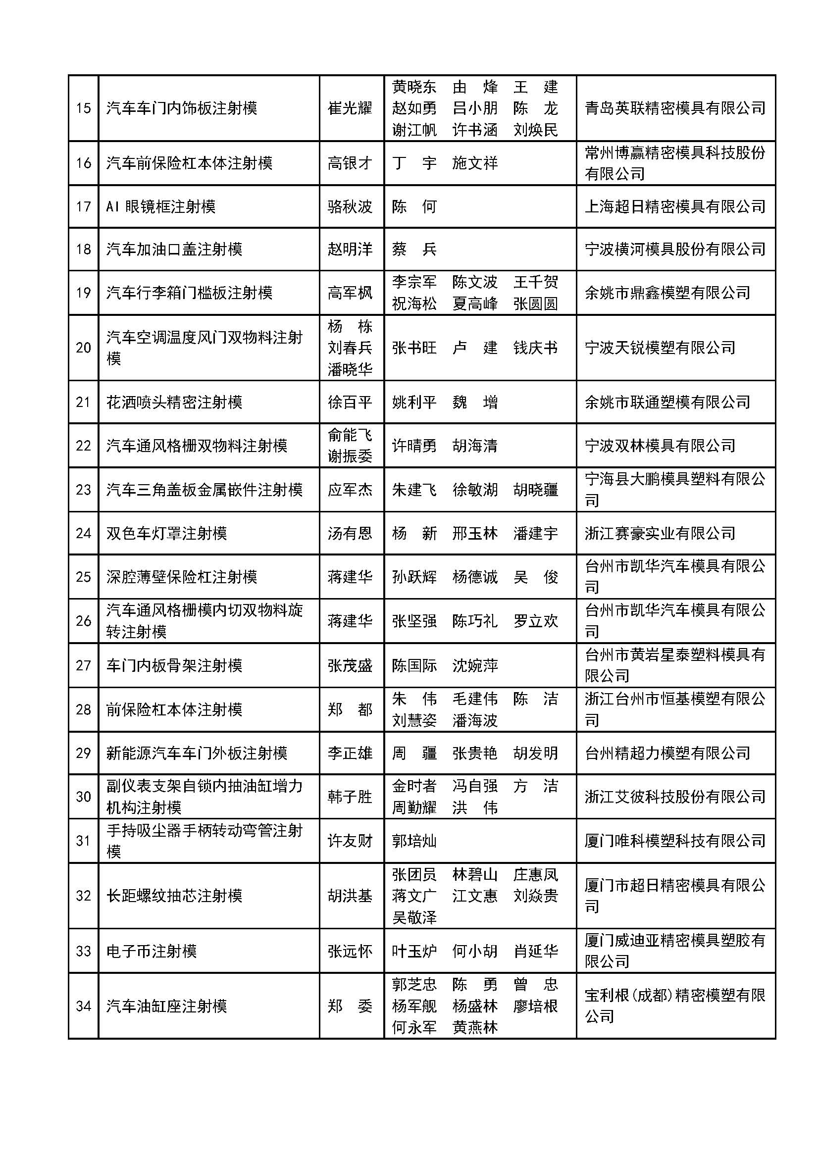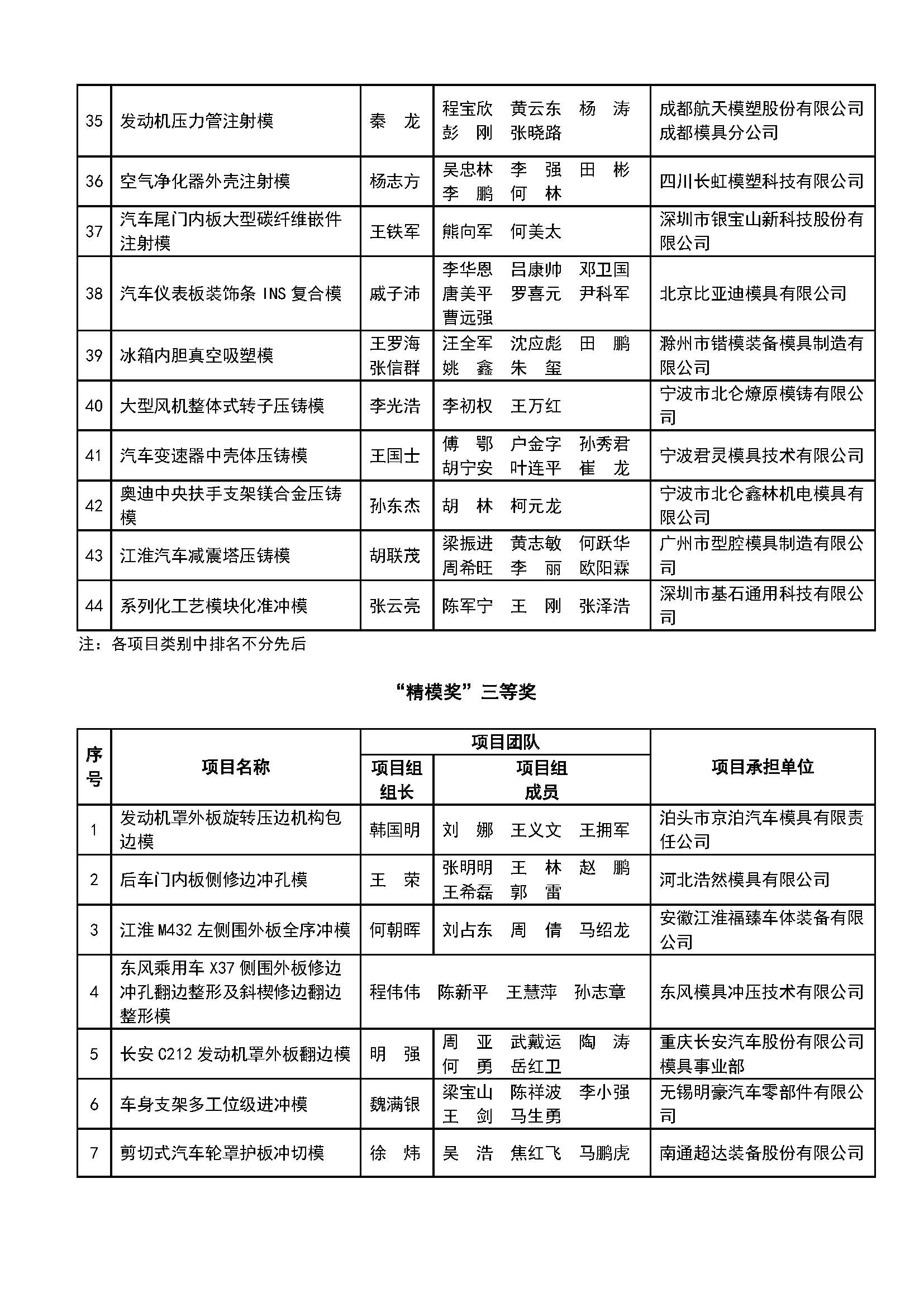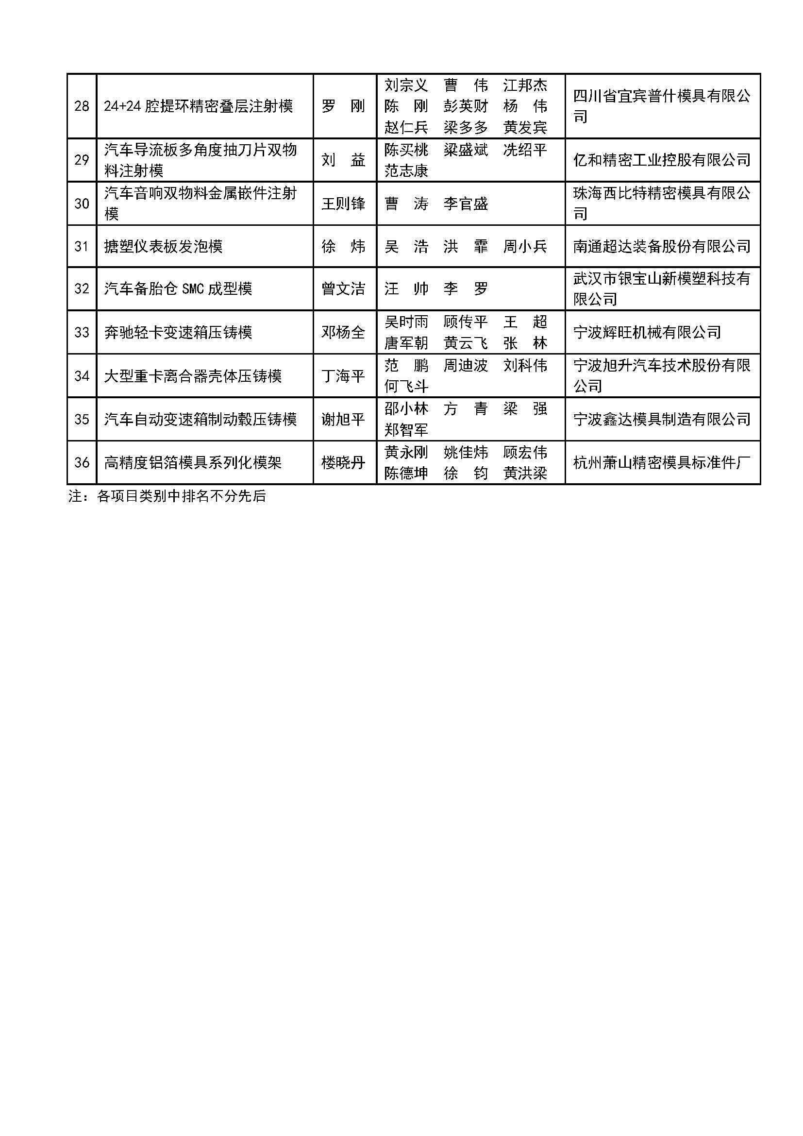 2016~2018年度中國模具工業協會“精模獎”項目評定結果公告