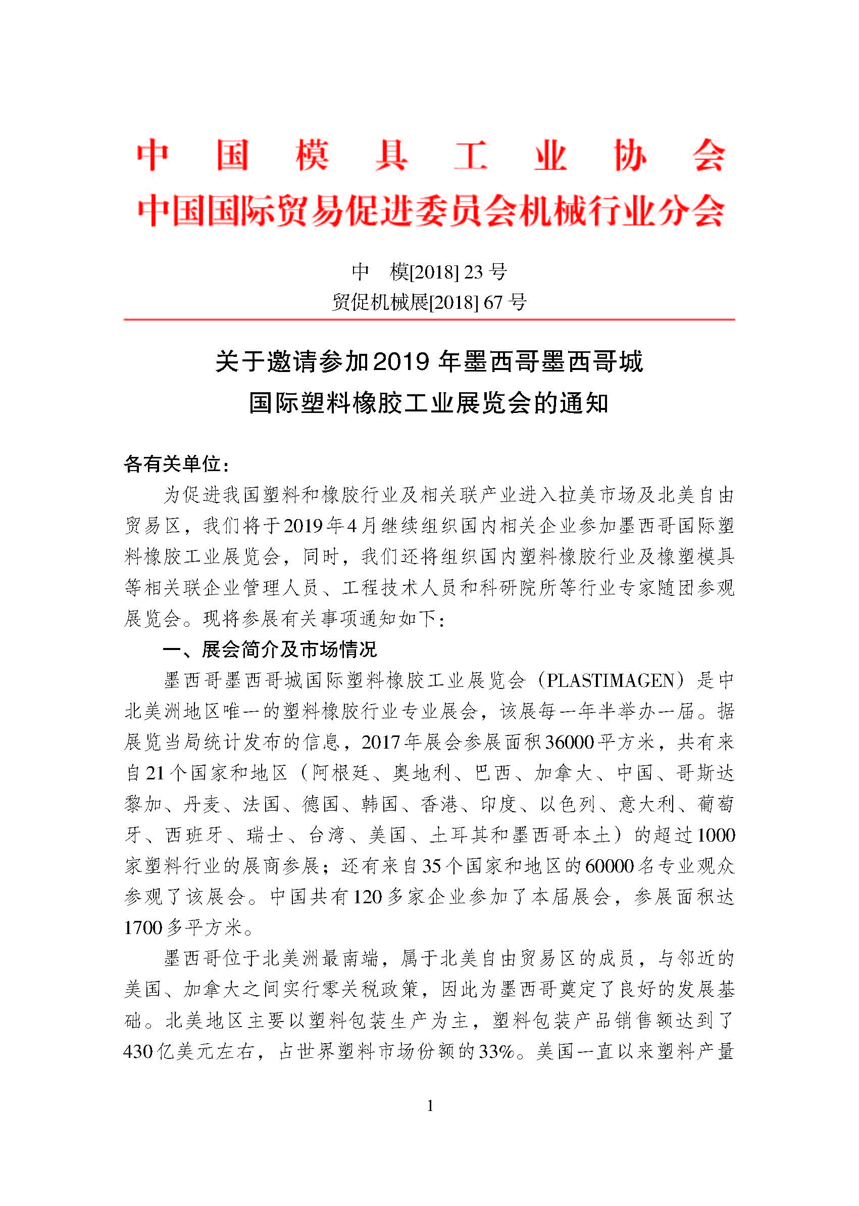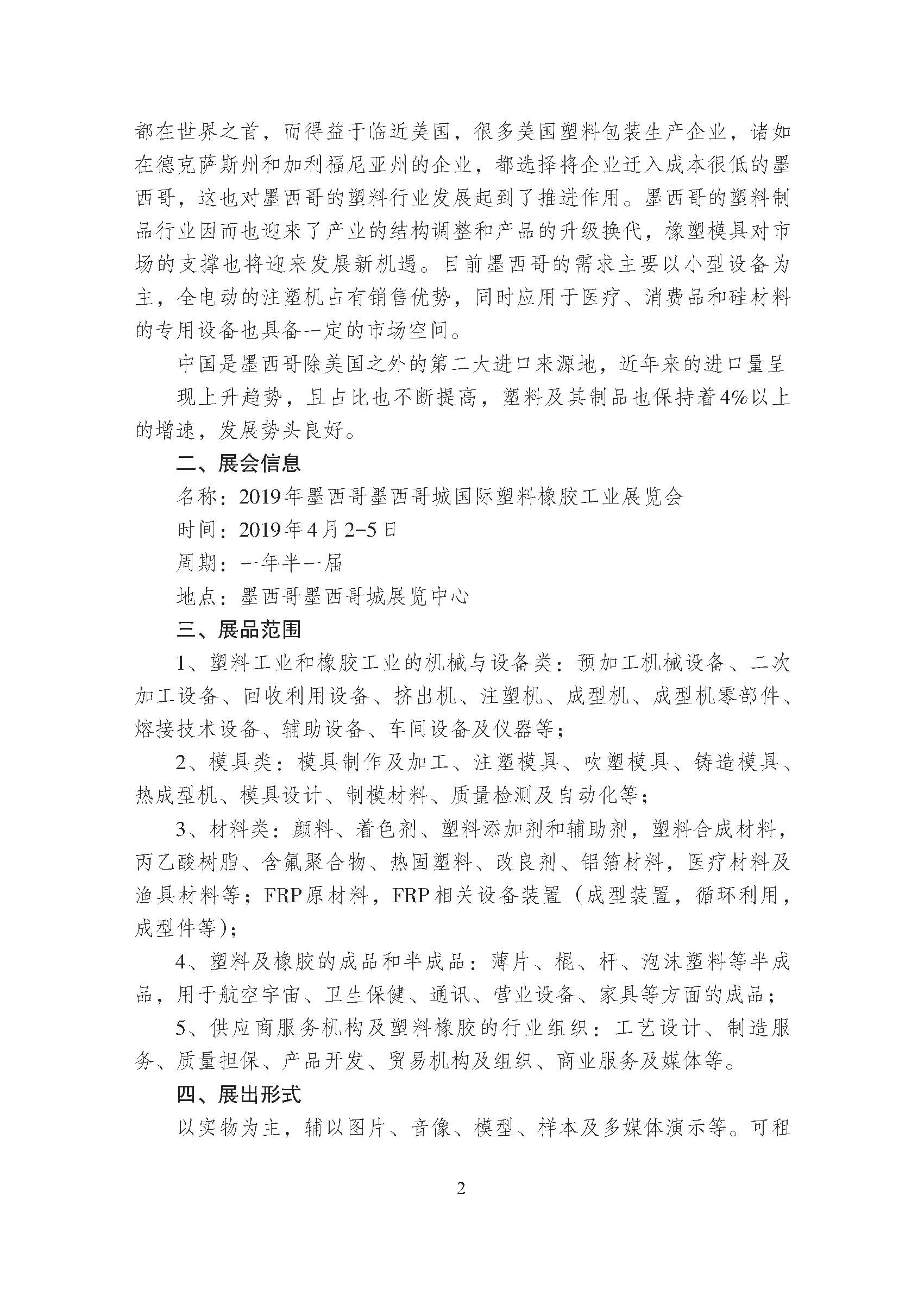 關于邀請參加2019 年墨西哥墨西哥城國際塑料橡膠工業展覽會的通知