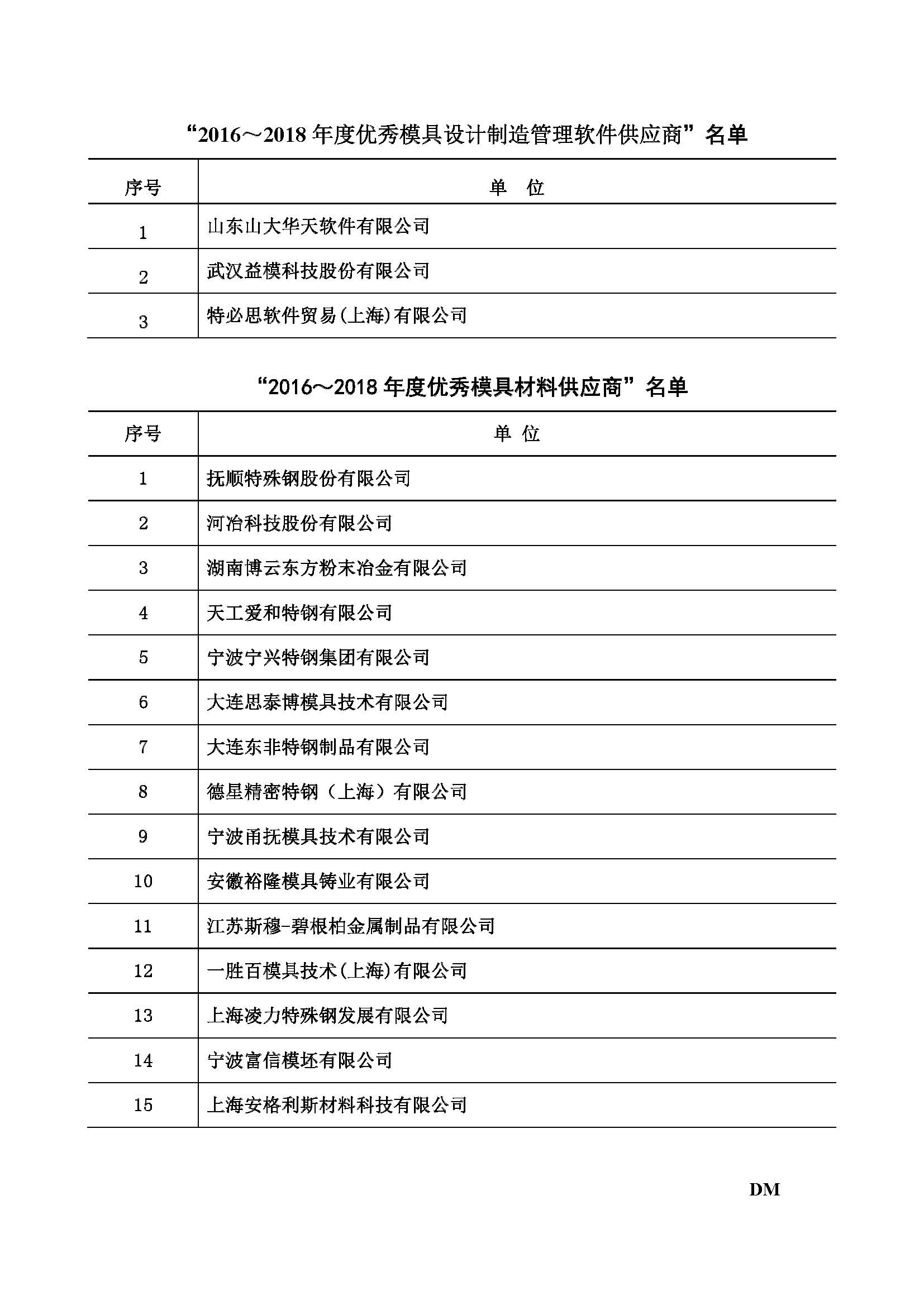 2016~2018年度優秀模具制造設備工具供應商、 優秀模具設計制造管理軟件供應商、 優秀模具材料供應商評定結果