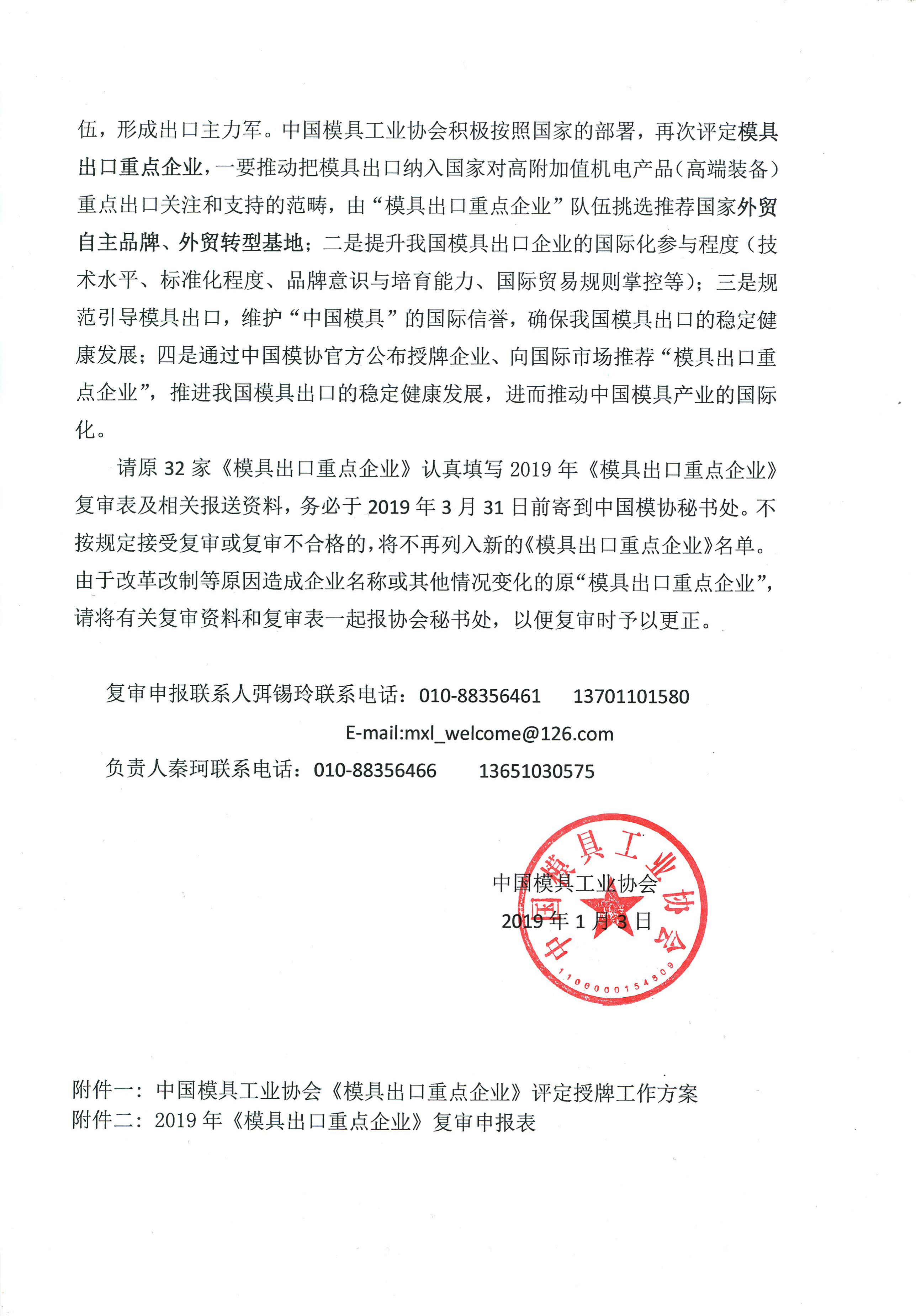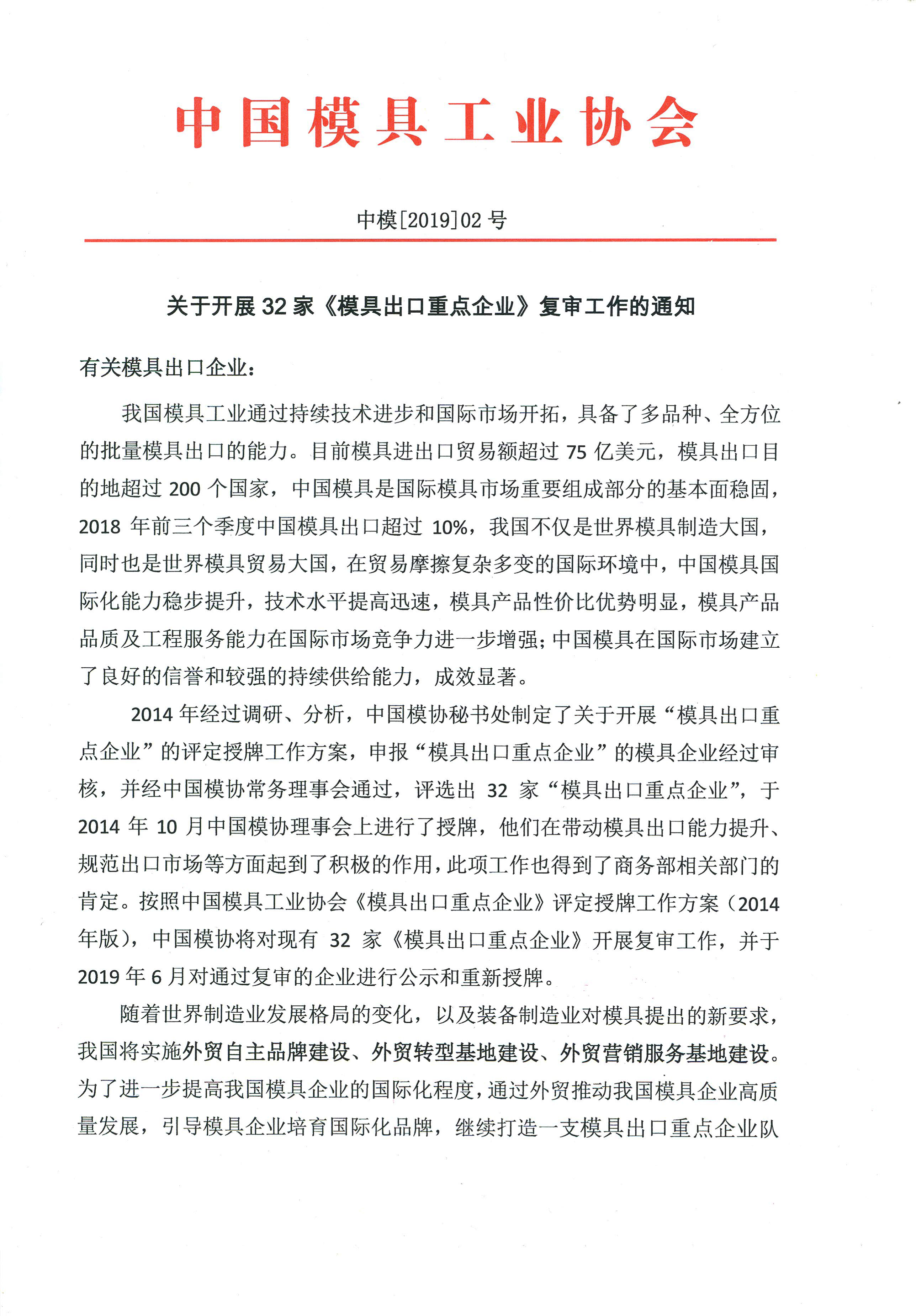 關(guān)于開展32家《模具出口重點(diǎn)企業(yè)》復(fù)審工作的通知