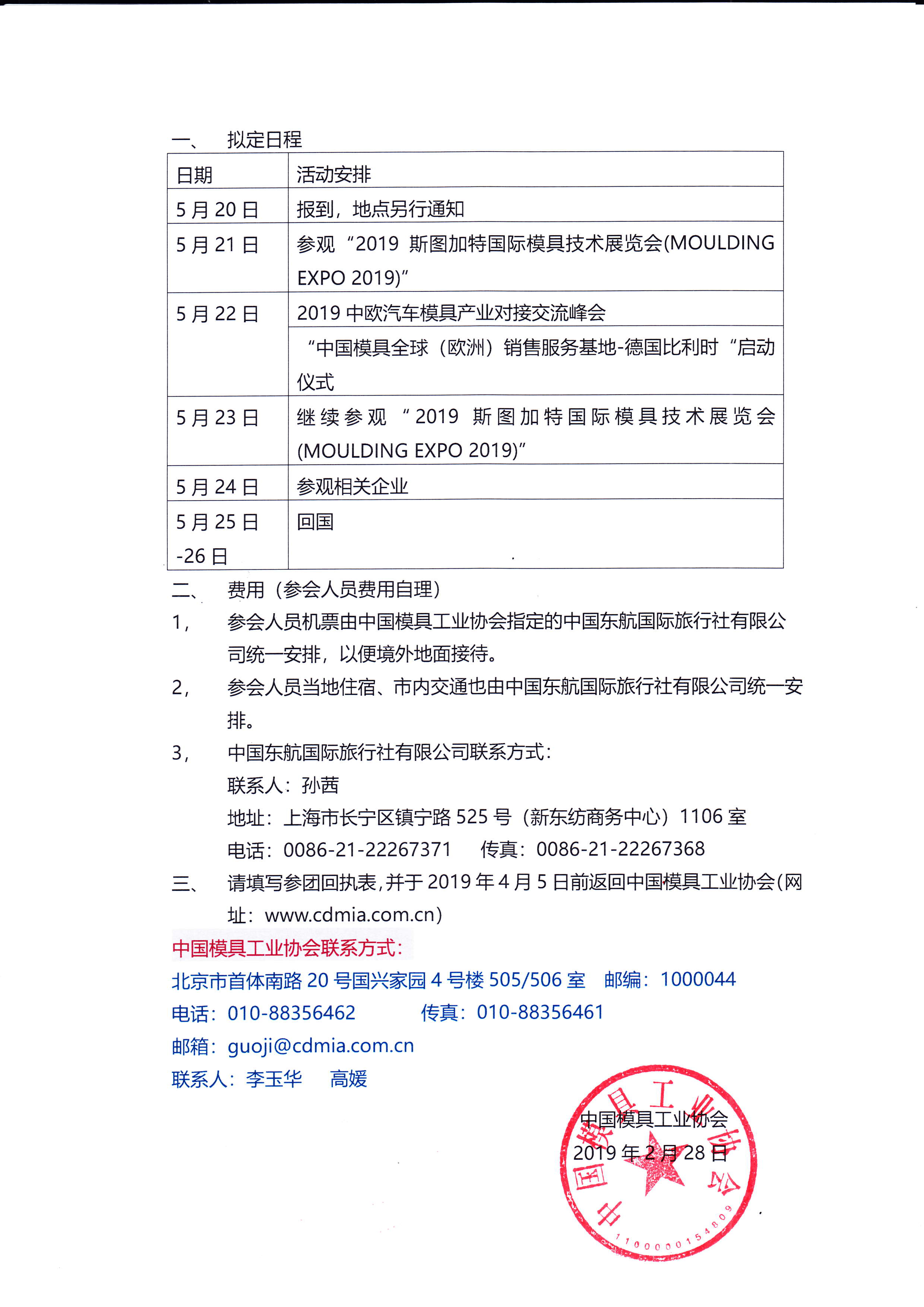 關于邀請參加2019年中歐汽車模具產業對接交流峰會的通知