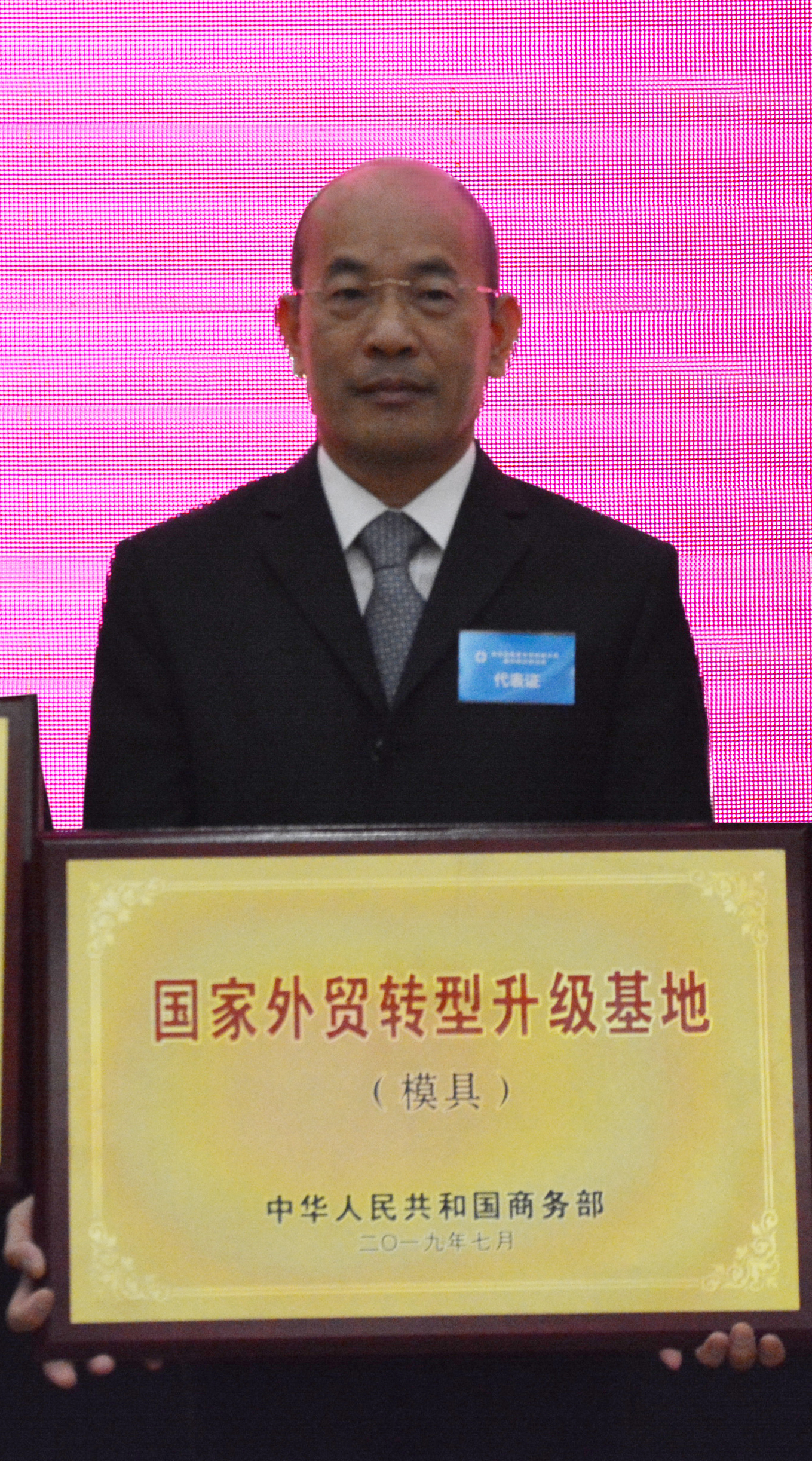 12月4日,商務部國家外貿轉型升級基地授牌儀式在東莞舉行,商務部部長助理任鴻斌為2019 年認定的65 個國家外貿轉型升級基地授牌,并在國家外貿轉型升級基地建設培訓班做了《堅持新發展理念,加快外貿轉型升級基地建設推進貿易高質量發展》的專題講座。商務部外貿司副司長宋先茂、商務部駐廣州副特派員謝瑩、廣東省商務廳副廳長任少、東莞市市長肖亞非、商務部國際商報社副社長史柳石,以及全國各省市商務廳(委、局)與65家基地負責人出席了授牌儀式。