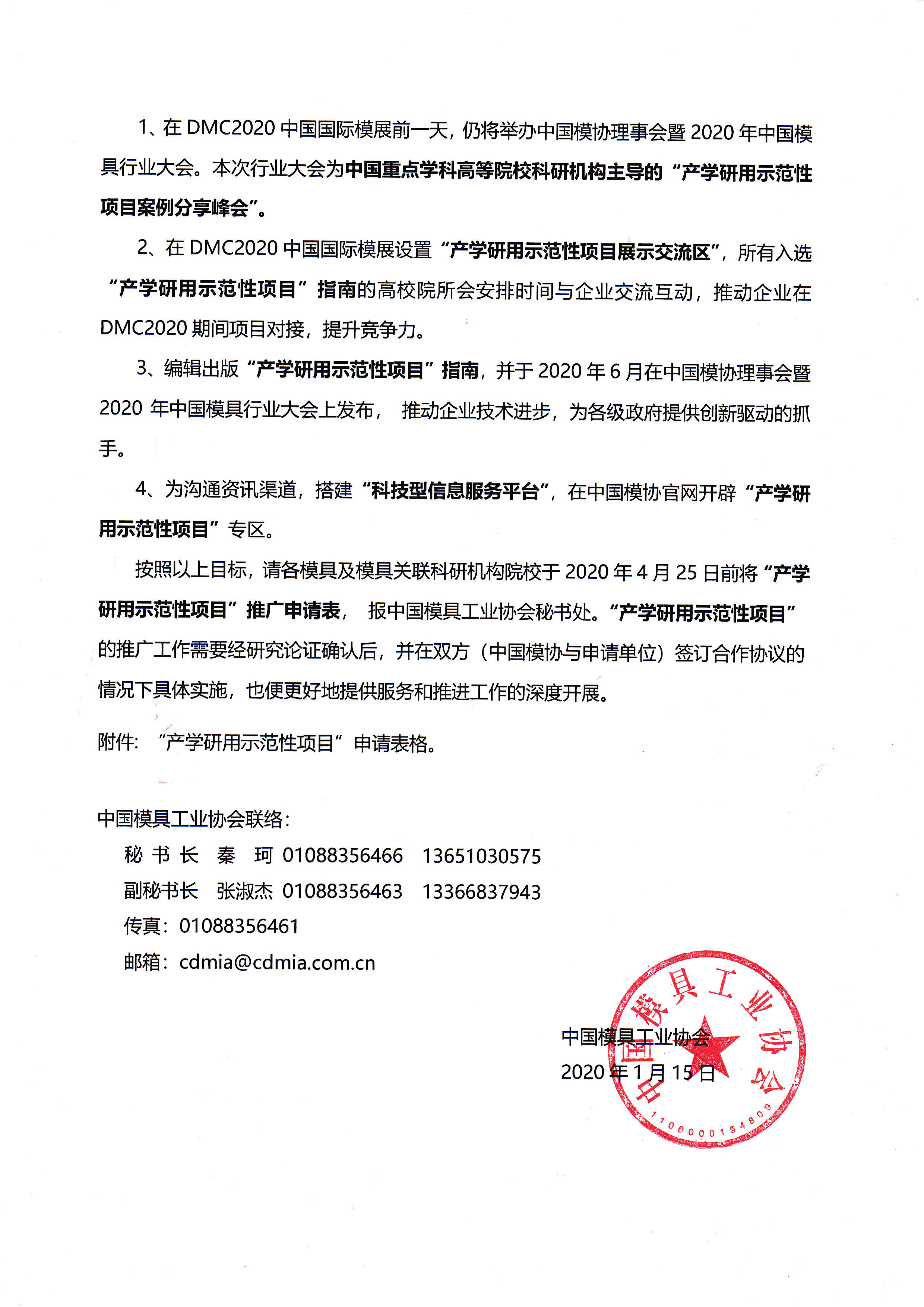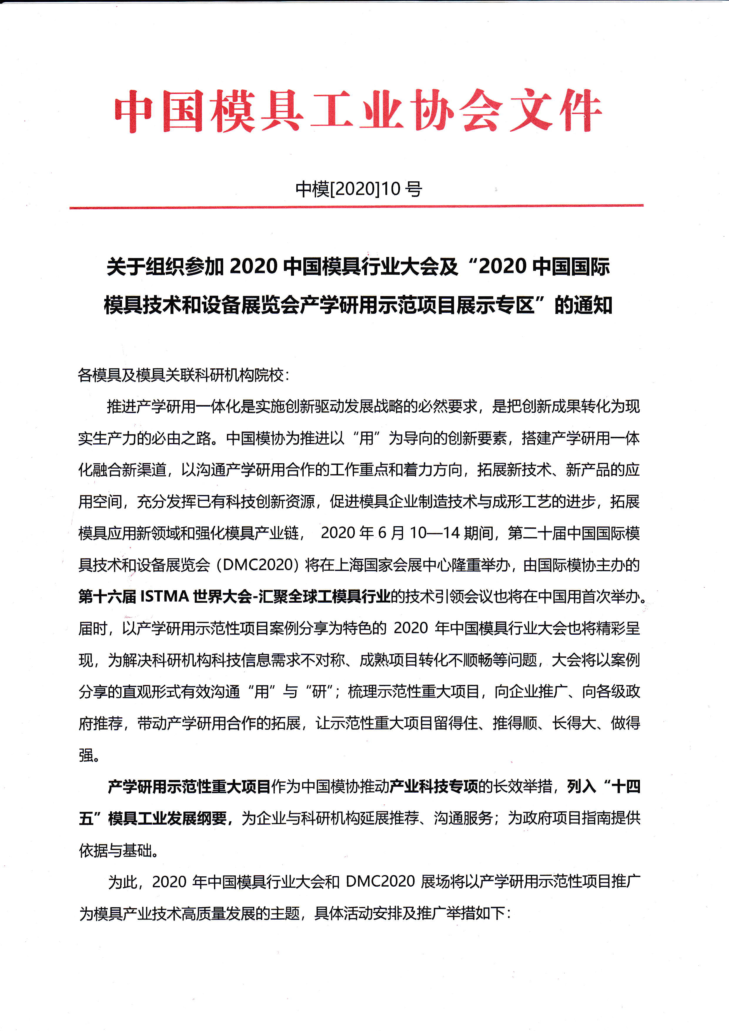 關(guān)于組織參加2020中國模具行業(yè)大會(huì)及“2020中國國際模具技術(shù)和設(shè)備展覽會(huì)產(chǎn)學(xué)研用示范項(xiàng)目展示專區(qū)”的通知