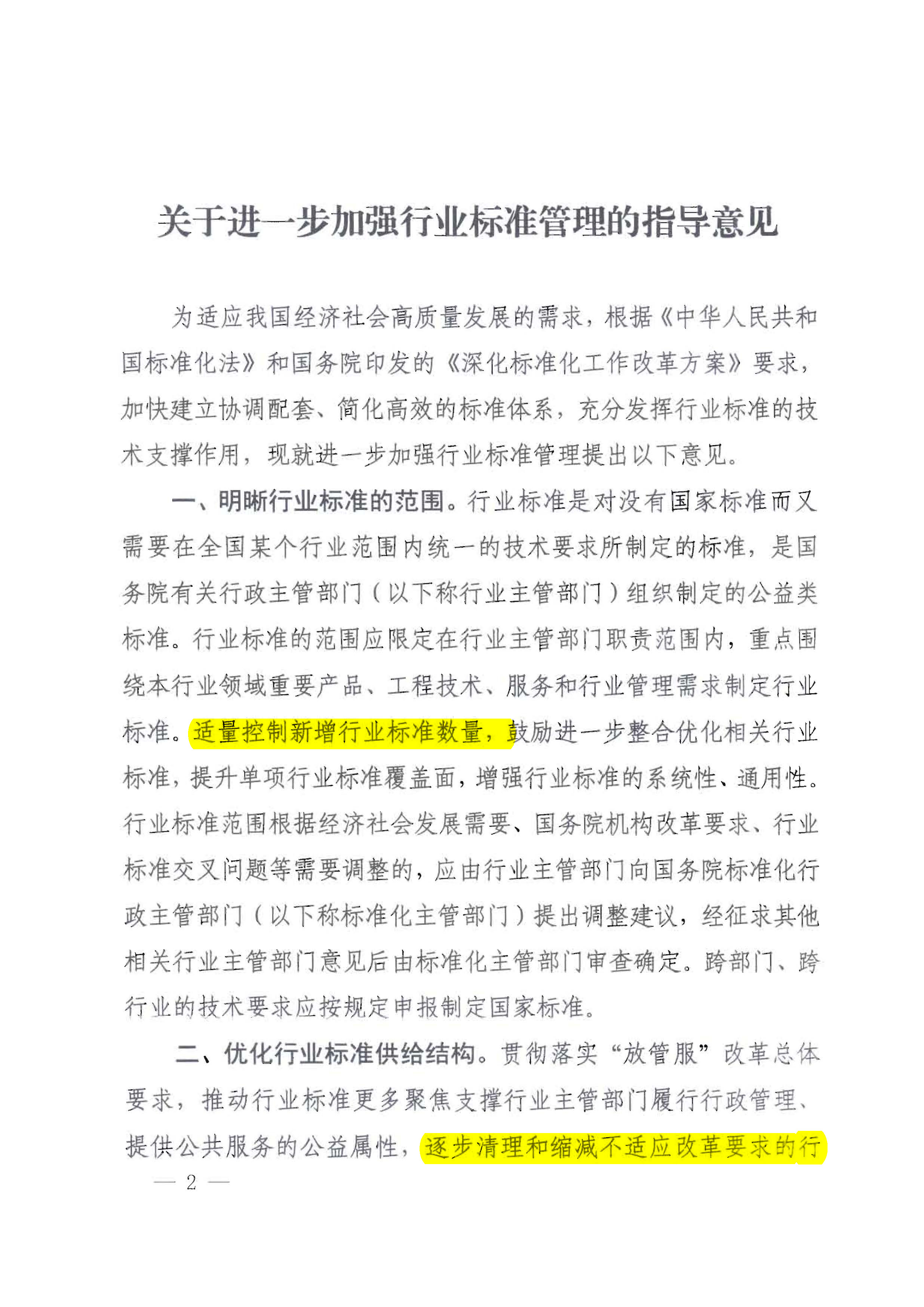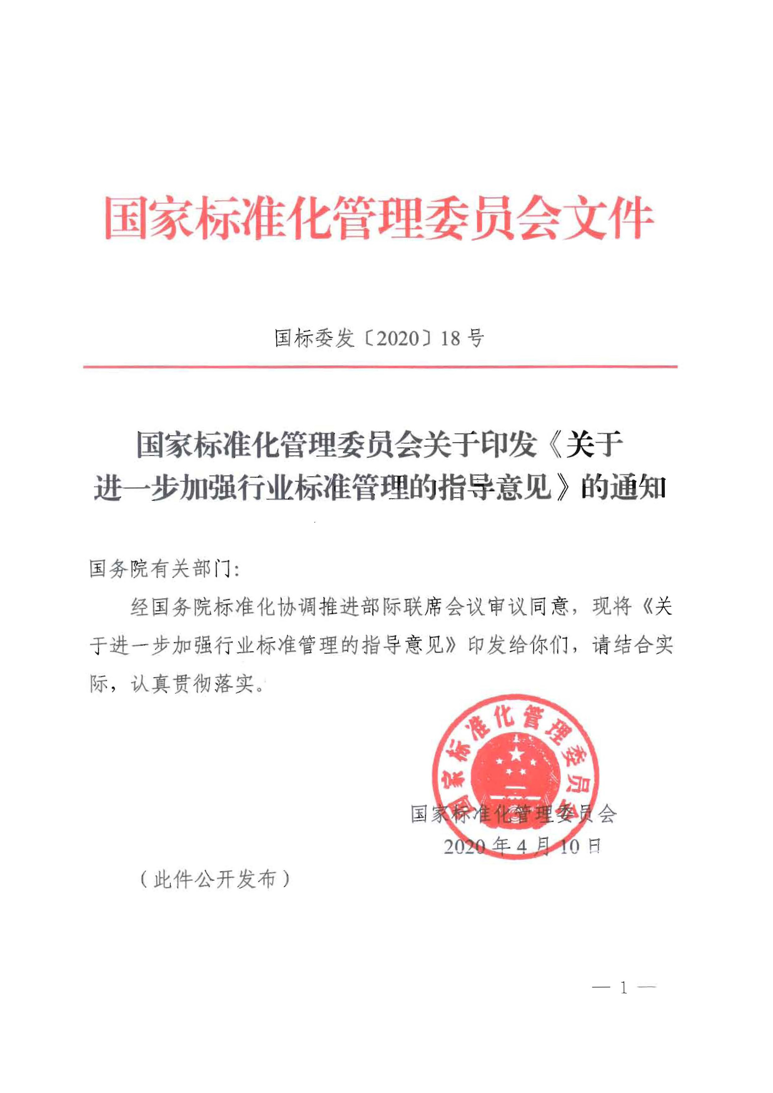 國家標準化管理委員會關于印發(fā)《關于進一步加強行業(yè)標準管理的指導意見》的通知