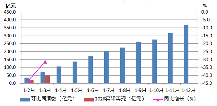 2020年1-3月機(jī)床工具行業(yè)營(yíng)業(yè)收入完成及同比變動(dòng)情況詳見圖1。
