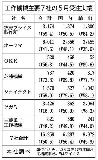 日刊工業新聞社6月9日公布了日本7家主要機床廠商4月份的機床訂單準確統計數值為162億5900萬日元,比去年同期減少了50.5%。隨著新型冠狀病毒疫情影響的不斷擴大,市場對于設備的投資也頻頻延期,內外需都大幅下跌。僅有來自中國市場的訂單在繼續回升,并開始出現貿易洽談等積極因素。