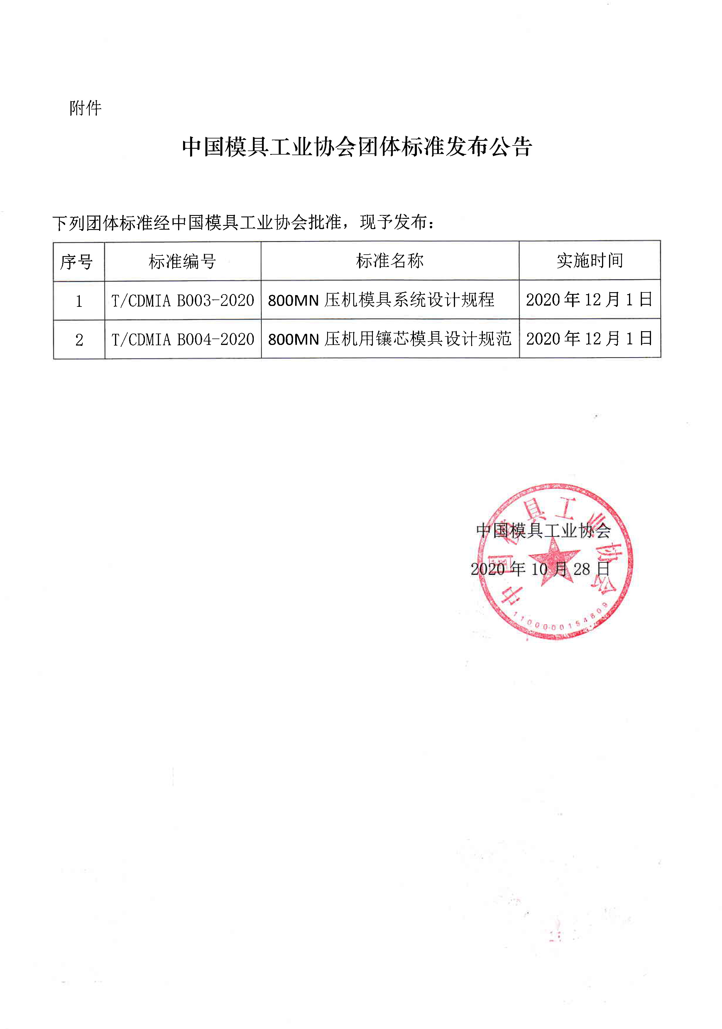 關(guān)于發(fā)布《800MN壓機(jī)模具系統(tǒng)設(shè)計(jì)規(guī)程》等兩項(xiàng)團(tuán)體標(biāo)準(zhǔn)公告的通知