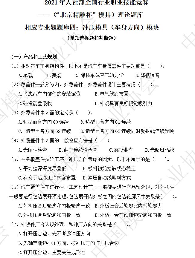 相應專業題題庫:沖壓模具(通用方向)模塊、沖壓模具(車身方向)模塊