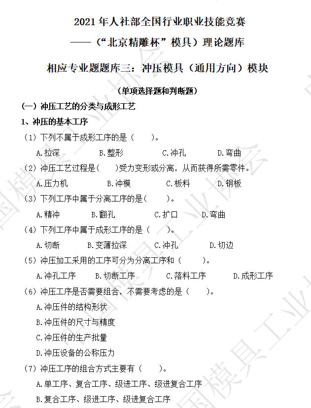 ——(“北京精雕杯”模具)理論題庫