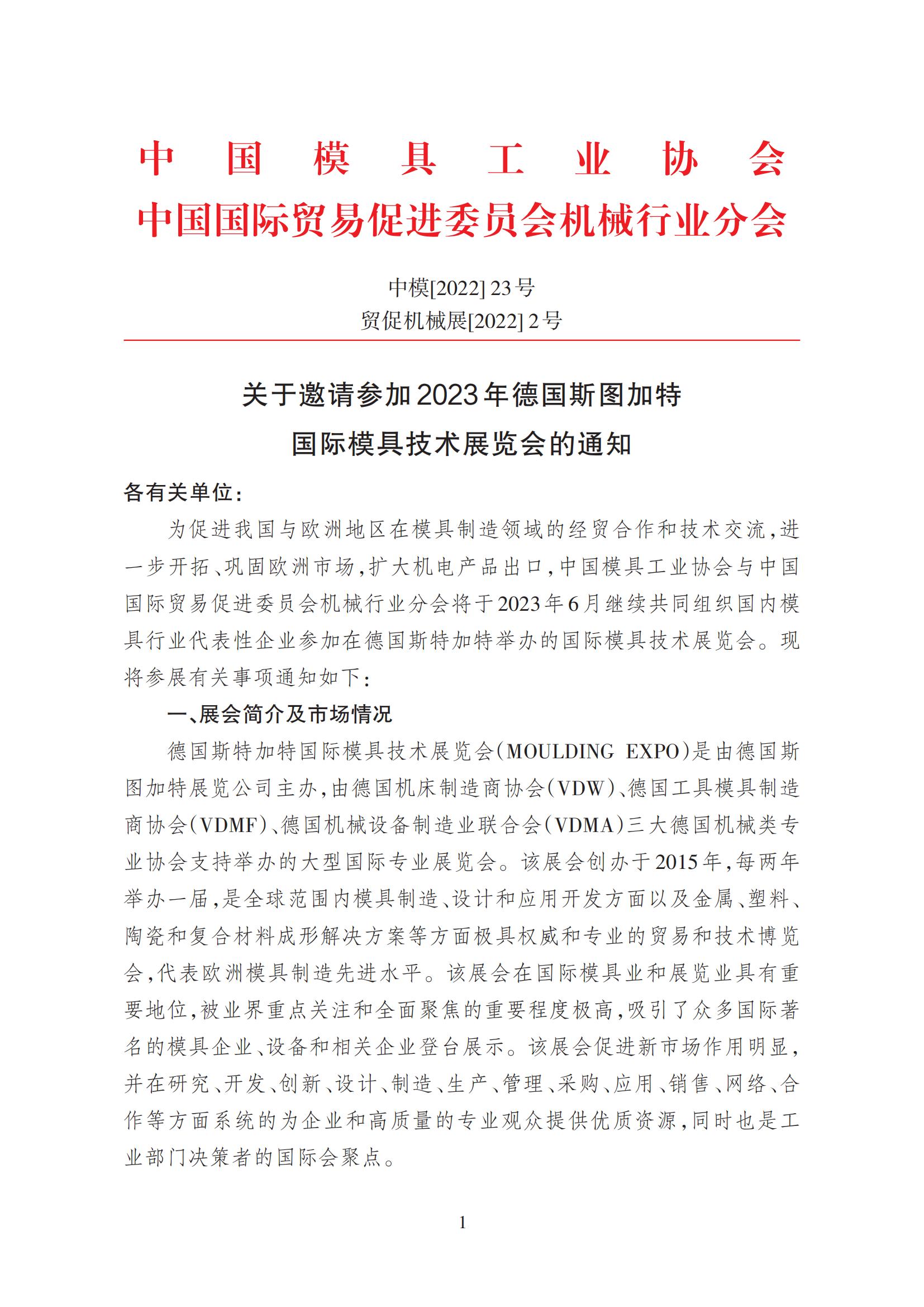 關(guān)于邀請(qǐng)參加2023年德國(guó)斯圖加特國(guó)際模具技術(shù)展覽會(huì)的通知