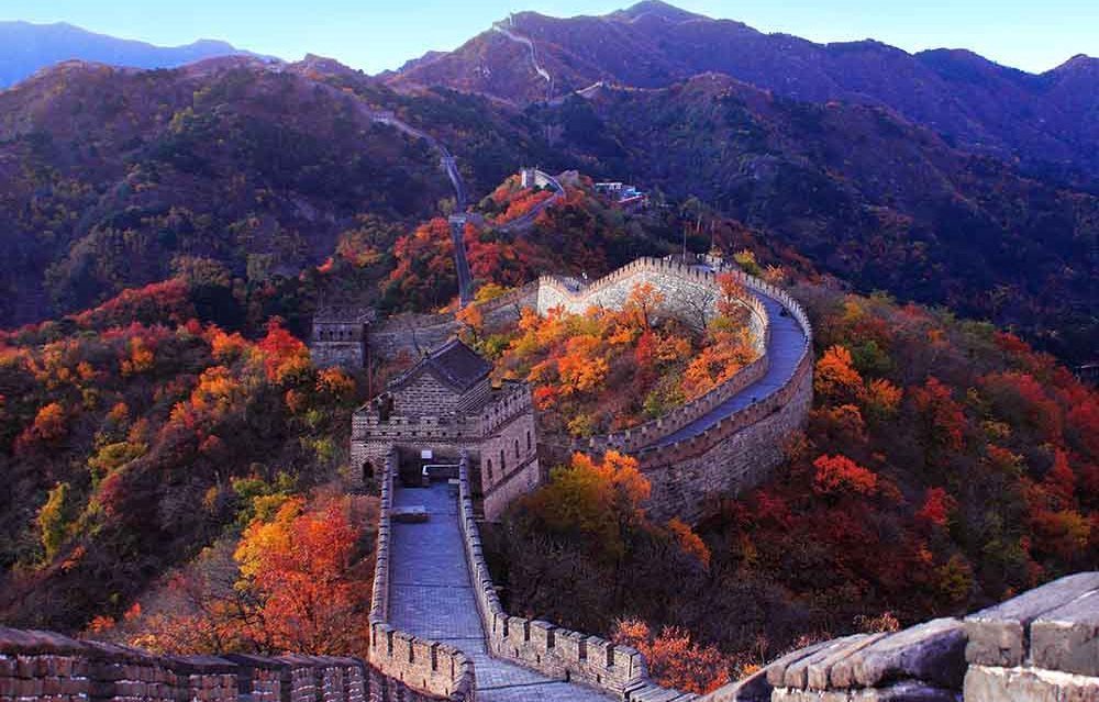The Mutianyu Great Wall has a long history and splendid culture, which is 70 kilometers away from Beijing City. As one of the famous spots of the Great Wall, the Mutianyu Great Wall is the essence of the Great Wall of the Ming dynasty. It has its own unique architectural style. Zhengguantai is very rare because there’re three watchtowers erected at one fortress. There are several sections in the northwestern part, known as the “cow horns edge”, “arrow” and “Eagles flying face up”, which are steep, towering, and undulating, resembling a soaring dragon soar. In spring, flowers bloom; in summer, mountains are covered with green with spring water running underneath; in autumn, red leaves cover the whole mountain range, with fruits on trees; in winter, snow falls and it’s a pure white world, thus gaining its reputation of being the best part of the Great Wall at home and abroad.